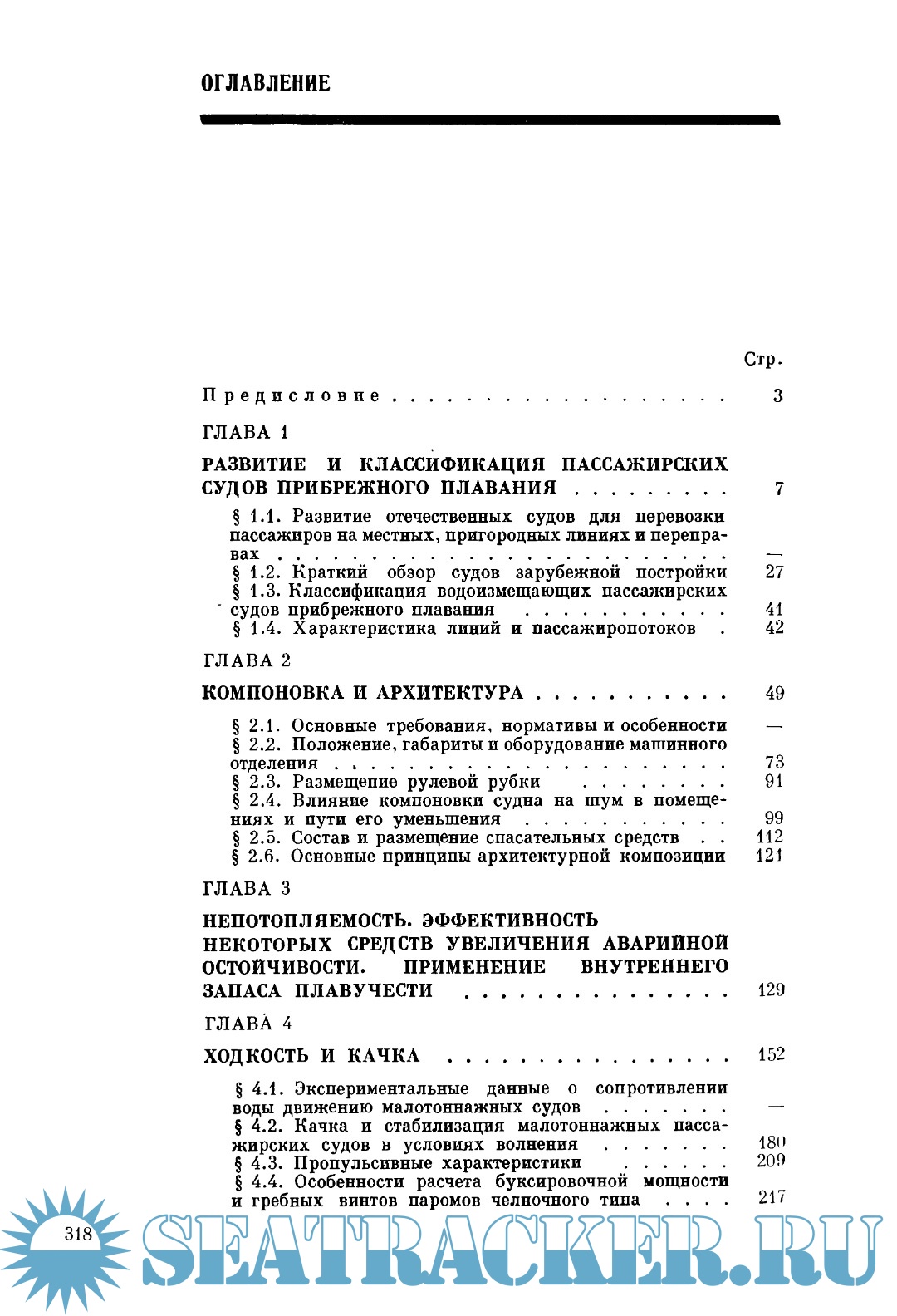 Книга рассчитана на читателей, связанных с проектированием, постройкой и обслуживанием пассажирских судов. Она также может использоваться студентами втузов при дипломном и курсовом проектировании.