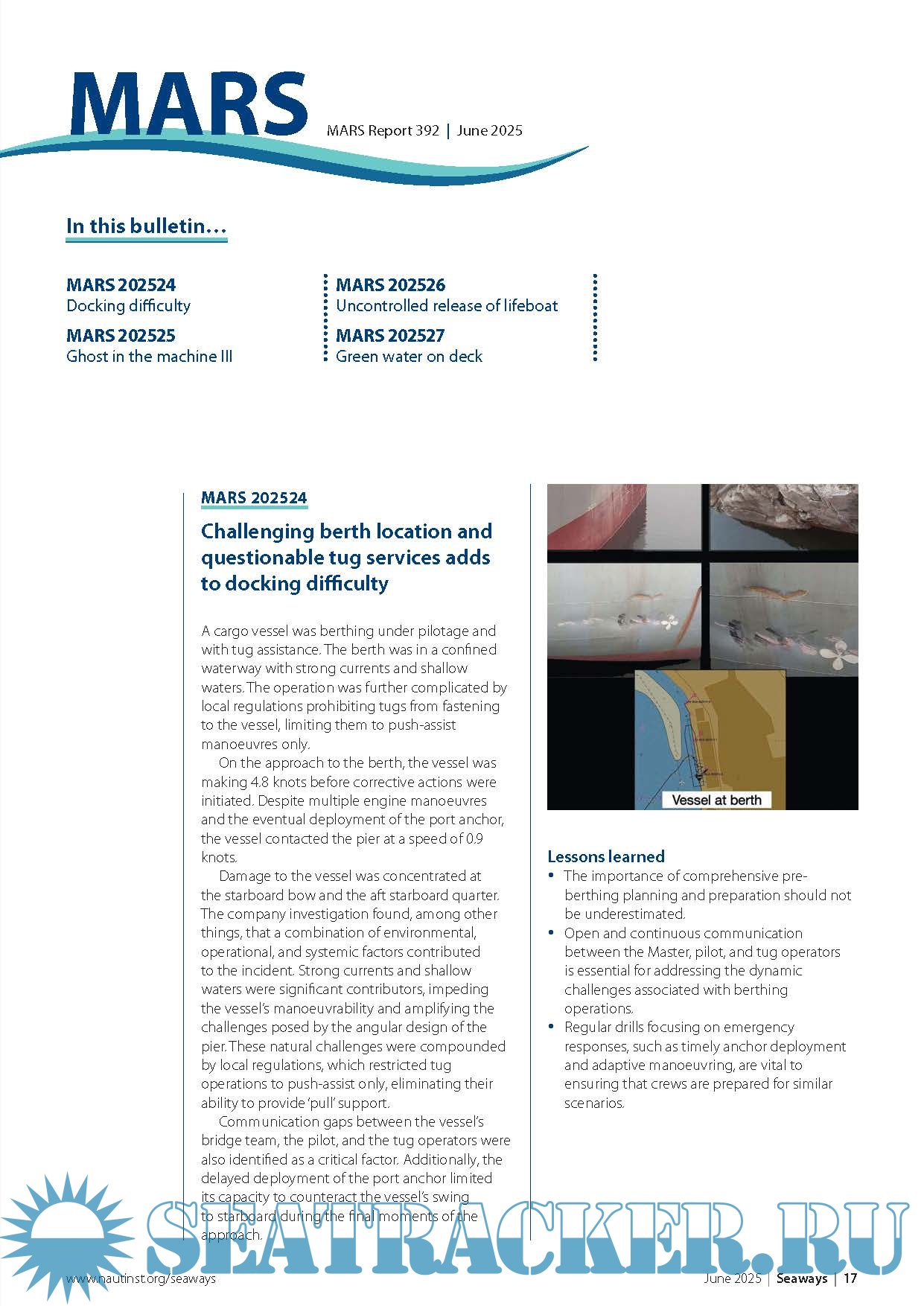 Mariners’ Alerting and Reporting Scheme (MARS) Reports (June - August) - The Nautical Institute…