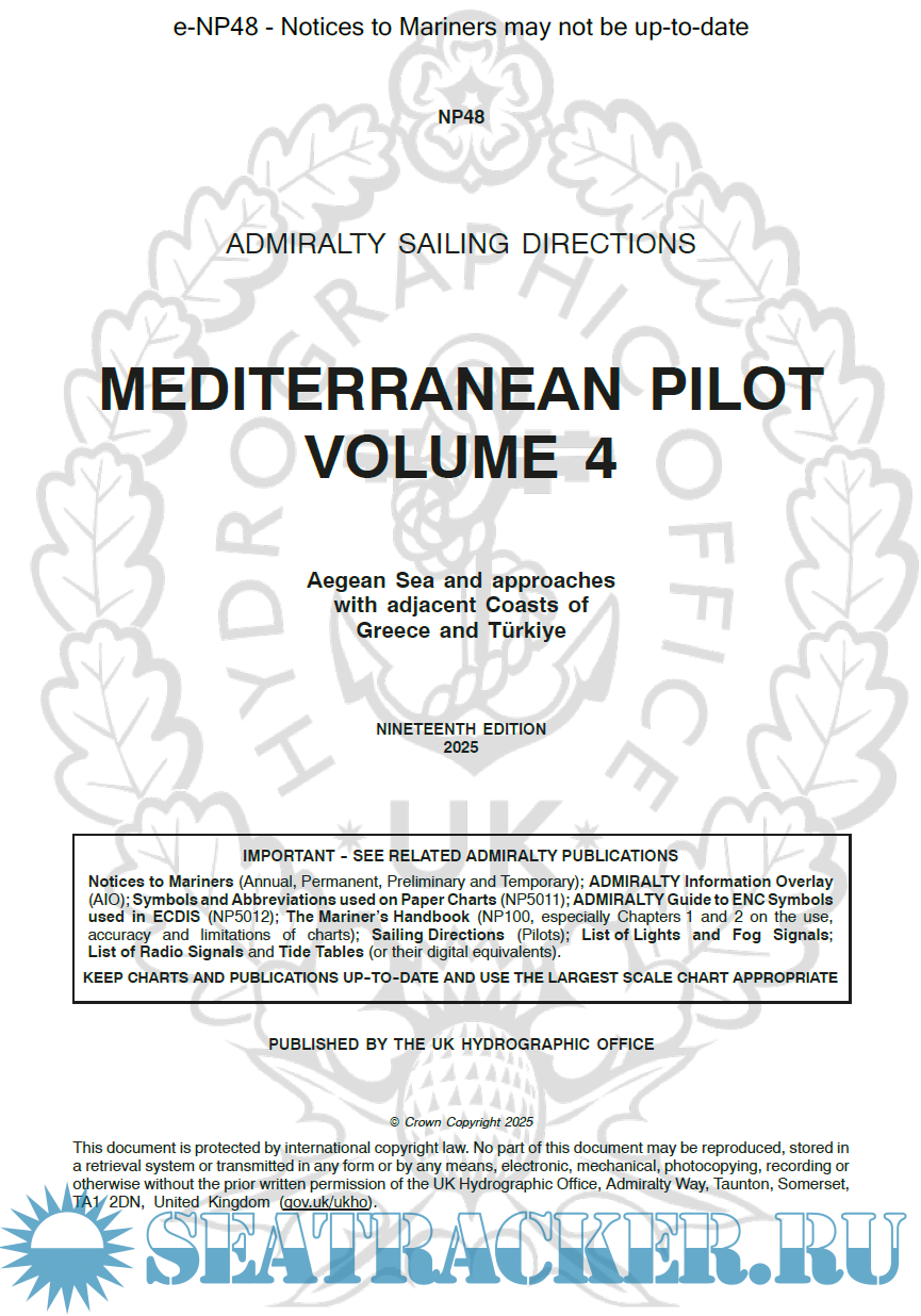 e-NP 48. Admiralty Sailing Directions – Mediterranean Pilot Volume 4 – UKHO.