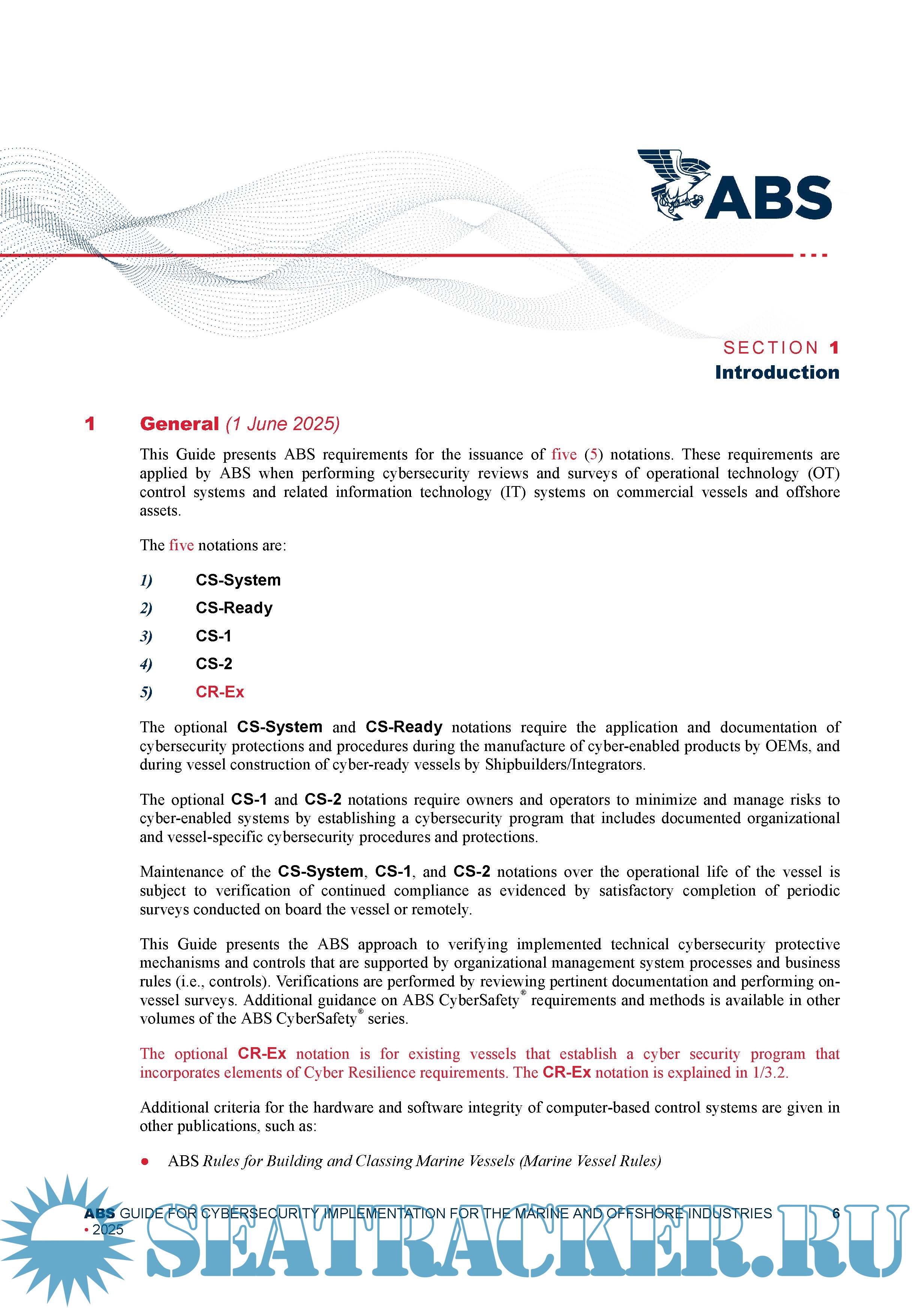 The June 2025 version introduces requirements for the optional CR-Ex notation for existing vessels that establish a cyber security program that incorporates elements of Cyber Resilience requirements.