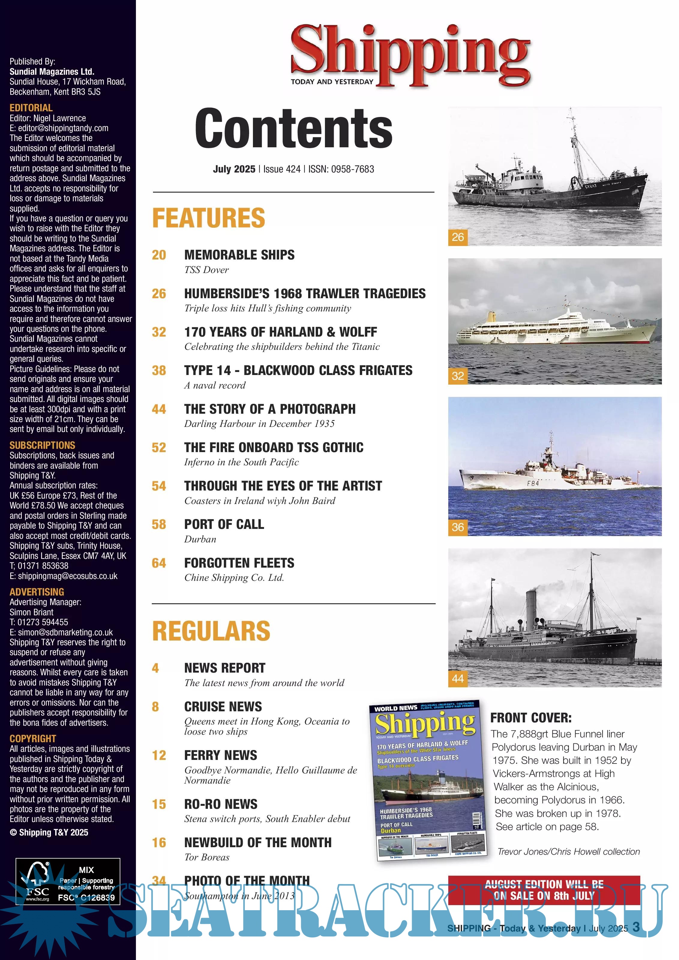 Shipping Today & Yesterday is a specialist magazine for the shipping enthusiast offering up-to-date information, topical and in-depth historical articles.