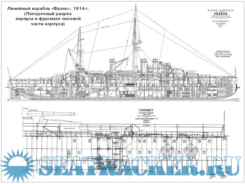 Описание: Линейные корабли типа «Курбэ» (Courbet) стали не только первыми французскими дредноутами, но и логическим завершением развития эскадренных броненосцев Третьей республики. В проекте «Курбэ» слились концепция «allbiggun» (только большие пушки), идеи национальной кораблестроительной школы, которая всегда была отмечена именами выдающихся конструкторов и оригинальными кораблями, а также жесткие строительные ограничения. Всего в 1910—1914 гг. было построено четыре линкора этого типа — «Курбэ», «Жан Бар», «Париж» и «Франс». Все они, вооруженные двенадцатью 305-мм орудиями, приняли участие в Первой мировой войне, ведя боевые действия на Средиземном море. «Франс» и «Жан Бар» дважды побывали в России: императорской — в 1914 г. и охваченной огнем Гражданской войны — в 1919 г. Первые французские дредноуты оказались удачными кораблями, прожив долгую жизнь, старательно поддерживаемую частыми модернизациями. «Курбэ» и «Париж» участвовали во Второй мировой, а «Парижу» удалось дожить до 1955 г.