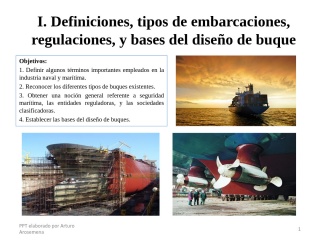 Description: I. Definiciones, tipos de embarcaciones, regulaciones, y bases del diseño de buque