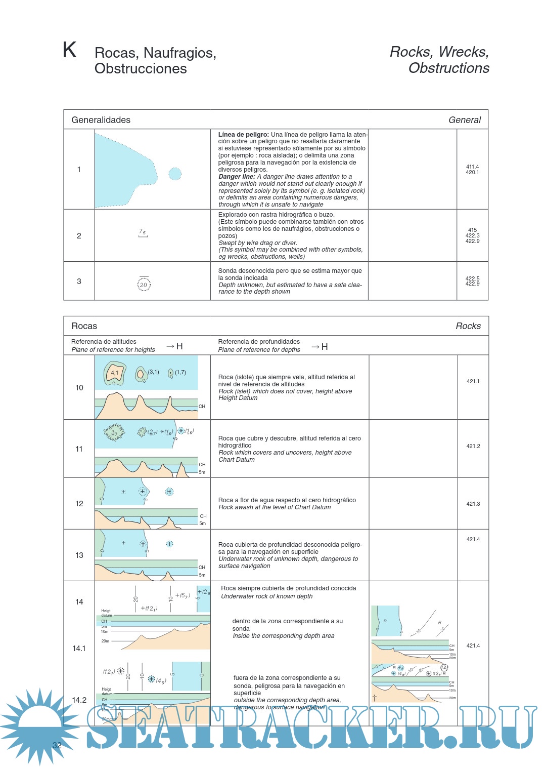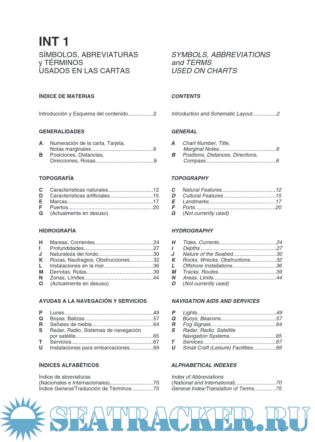 Year: 2011 Language: English, Spanish Author: Instituto Hidrográfico de la Marina Genre: Atlas Publisher: Instituto Hidrográfico de la Marina Format: PDF Quality: eBook Pages count: 104 Description: This edition of Symbols, Abbreviations and Terms used on charts is based upon the “Chart specifications of the IHO” (IHO: International Hydrographic Organization), which came into force at the XIIth International Hydrographic Conference 1982 in Monaco. This publication also shows number INT 1, as being the official publication of the IHO in Spanish language on this topic. This publication contains the complete symbols, abbreviations and terms used on paper charts published by Instituto Hidrográfico de la Marina (IHM). This ublication applies to printed charts. Symbols and abbreviations shown on navigational display systems using electronic charts may sometimes differ from those described in this document. All New Editions published by IHM are based upon international specifications. Charts based upon older specifications will be gradually replaced. In nautical documents in force, the numbers of the symbols and abbreviations referred in INT 1 may still be prefixed with the letter “I” for International (e.g. IK 28 instead of K28).