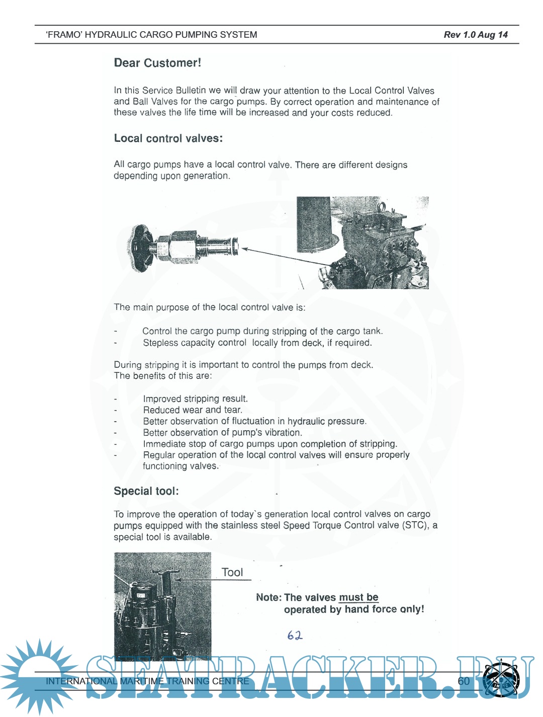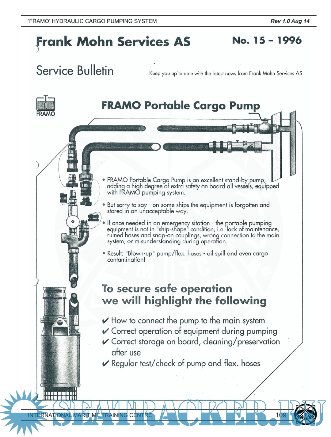 This professionally designed training manual is part of a certified marine engineering course focusing on the FRAMO Hydraulic Cargo Pumping System—a globally recognized system used for cargo handling in tankers, particularly in chemical and product carriers. The manual is issued by the International Maritime Training Centre (IMTC), one of India’s premier maritime training institutions, and provides extensive theoretical and practical guidance on the design, function, and maintenance of hydraulic cargo pumping systems.