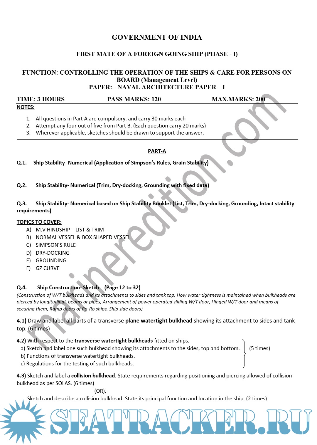 Naval Architecture Paper II: Theory Answers to Exam Questions of MMD India for Chief Mates F.G.…