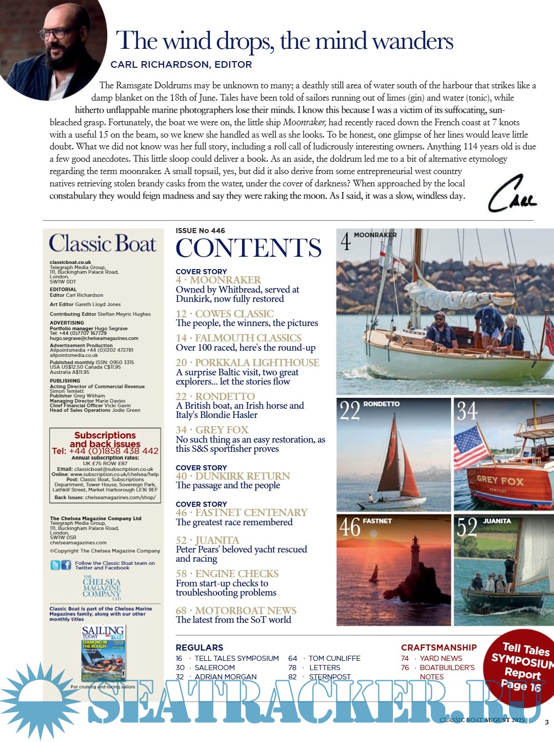 Description: Classic Boat is the magazine for the world’s most beautiful boats. Packed with stunning images, we have the inside stories of the great classic yachts and motorboats afloat today, as well as fascinating tales from yesteryear and the latest from the wooden boat building scene around the world. For over 30 years Classic Boat has celebrated the world’s most beautiful boats. Each issue showcases the best-designed traditional boats afloat, examining their design, provenance and heritage and championing their classic good looks and craftsmanship.