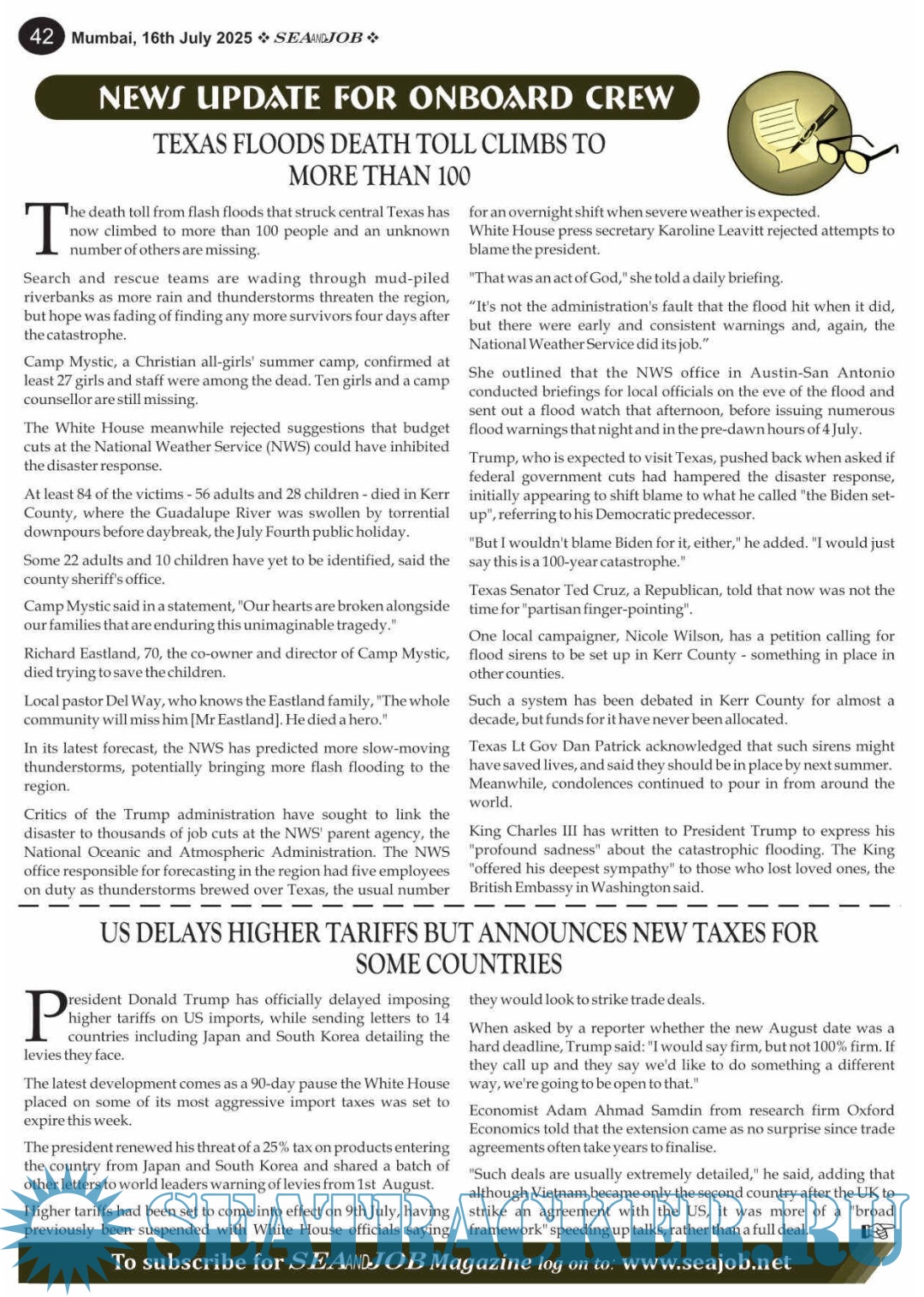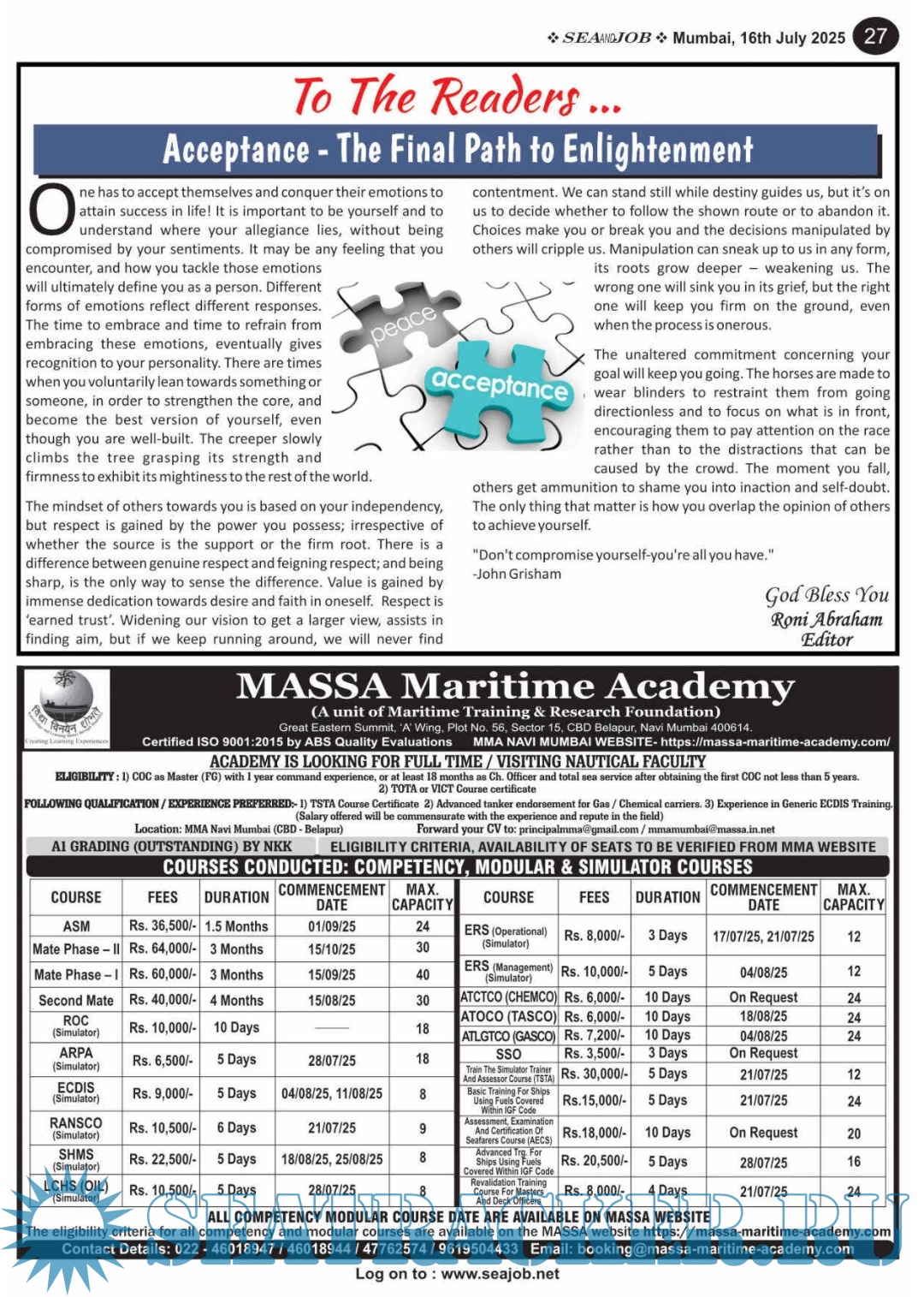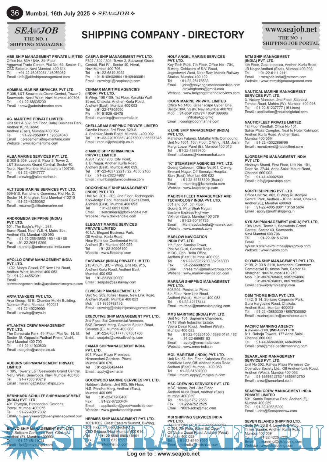 Year: 2025 Language: English Author: Sea Line Group Genre: Magazine, Periodical (Magazine) Edition: Vol. XVIII, No. 14/25 Format: PDF Quality: eBook Pages count: 72 Description: The Sea and Job magazine launched in May 2007, was the second venture of Sea Line Group succeeding 'seajob.net' bringing the much renowned essence to the Group, the Sea and Job Magazine quickly gained popularity, becoming the No. 1 Shipping Magazine that came to be widely circulated all over India.Sea and Job over the years has evolved as the most trusted, ethical, objective and read maritime publication that possesses a large database of subscribers from various verticals in the industry.The magazine provides informative and interesting articles covering not just the shipping world but also the world outside it. Sea and Job is also a medium for the shipping/ manning companies to advertise marine jobs and also to promote their organization by publicizing internal activities like seminars, sports events and parties.Some notable endeavors of the magazine include the Know Your Recruiter Column, the Sailing Episodes Column and the Marine Insights section. The consistent efforts and the dedication to provide extraordinary services to the industry has resulted in the magnifying popularity and patronage of Sea and Job. Additional info: 16-31 July 2025.