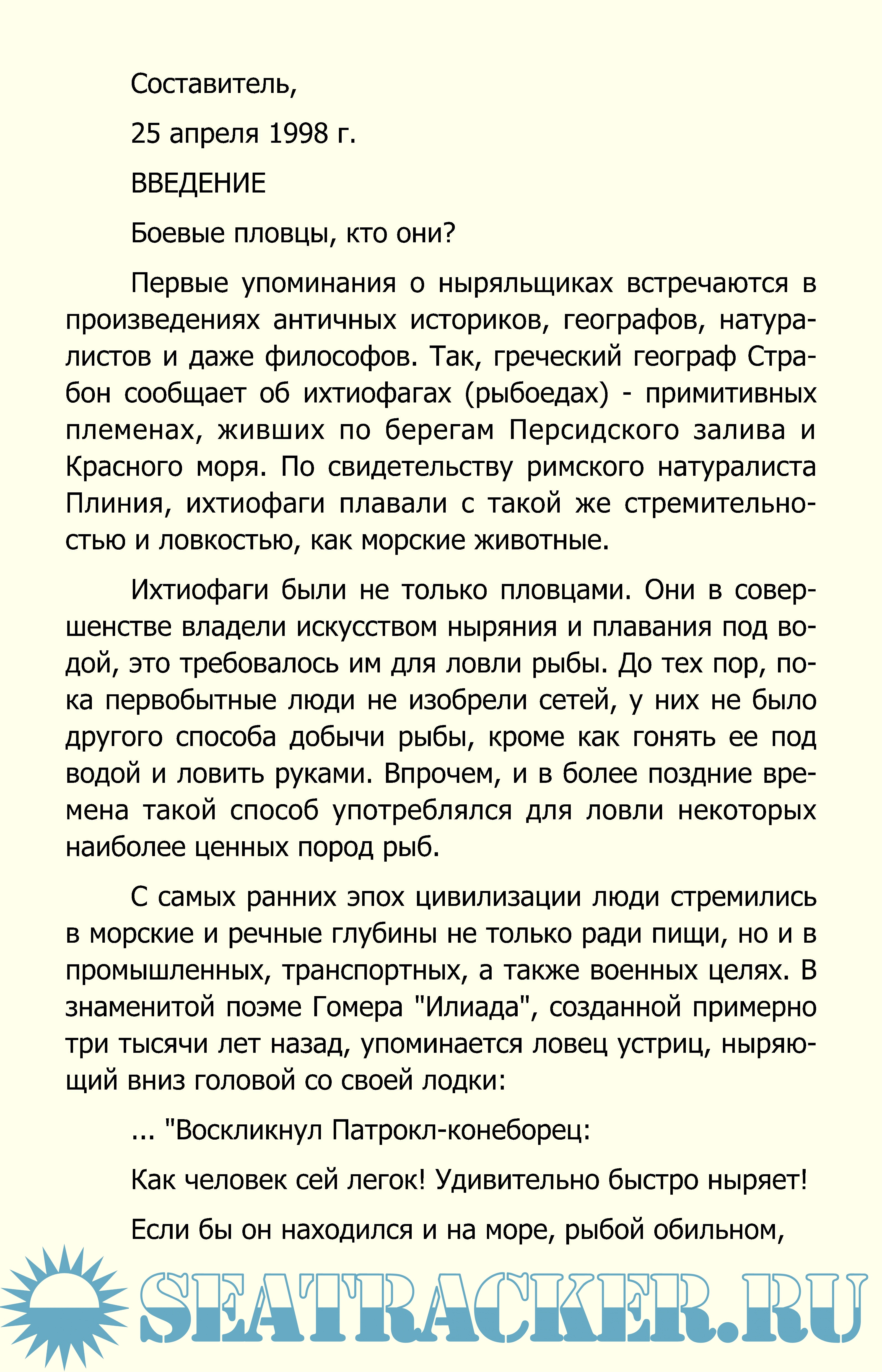 Описание: В этой книге содержится немало сведений исторического характера. Однако было бы неправильно считать ее исследованием по истории морской войны. Перед составителем стояла иная задача. Он стремился на исторических примерах раскрыть суть проблем подводного плавания, технического оснащения пловцов-подводников, методов обучения и боевого применения подводных разведчиков-диверсантов.