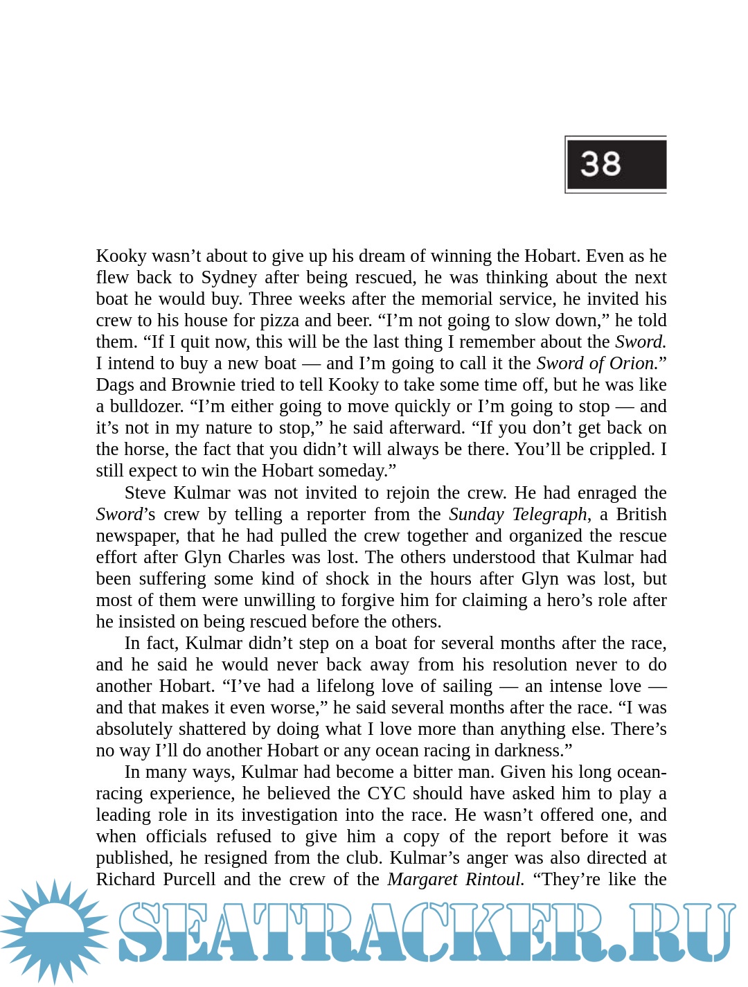 Year: 2011 Language: English Author: G. Bruce Knecht Genre: Historical Publisher: AmazonEncore ISBN: 978-1-61218-143-1 Format: PDF, EPUB Quality: eBook Pages count: 271 Description: On December 26, 1998, 115 sailboats crossed the starting line of the famous Sydney to Hobart Yacht Race. The 630-nautical-mile contest is among the most difficult races in the world, a test of strength and endurance like few others. But no one could have foreseen the tragedy that would befall the competitors, who sailed into a massive storm that tore apart the fleet with hurricane-force winds and eighty-foot waves. What began as a race for glory rapidly became a fight for survival. In this gripping insider’s account, award-winning writer G. Bruce Knecht focuses on three yachts and their crews, weaving together an extraordinary story with vivid detail, outsized personalities, and high drama. Most importantly, he offers a glimpse into how people with very different backgrounds responded to something bigger than they were—and how it changed them forever. Hailed as “harrowing” by the New York Times, “pulse-pounding” by People magazine, and “the Perfect Storm of blue-water sailboat racing” by Walter Cronkite, The Proving Ground is a true-to-life adventure tale as thrilling as any work of fiction.