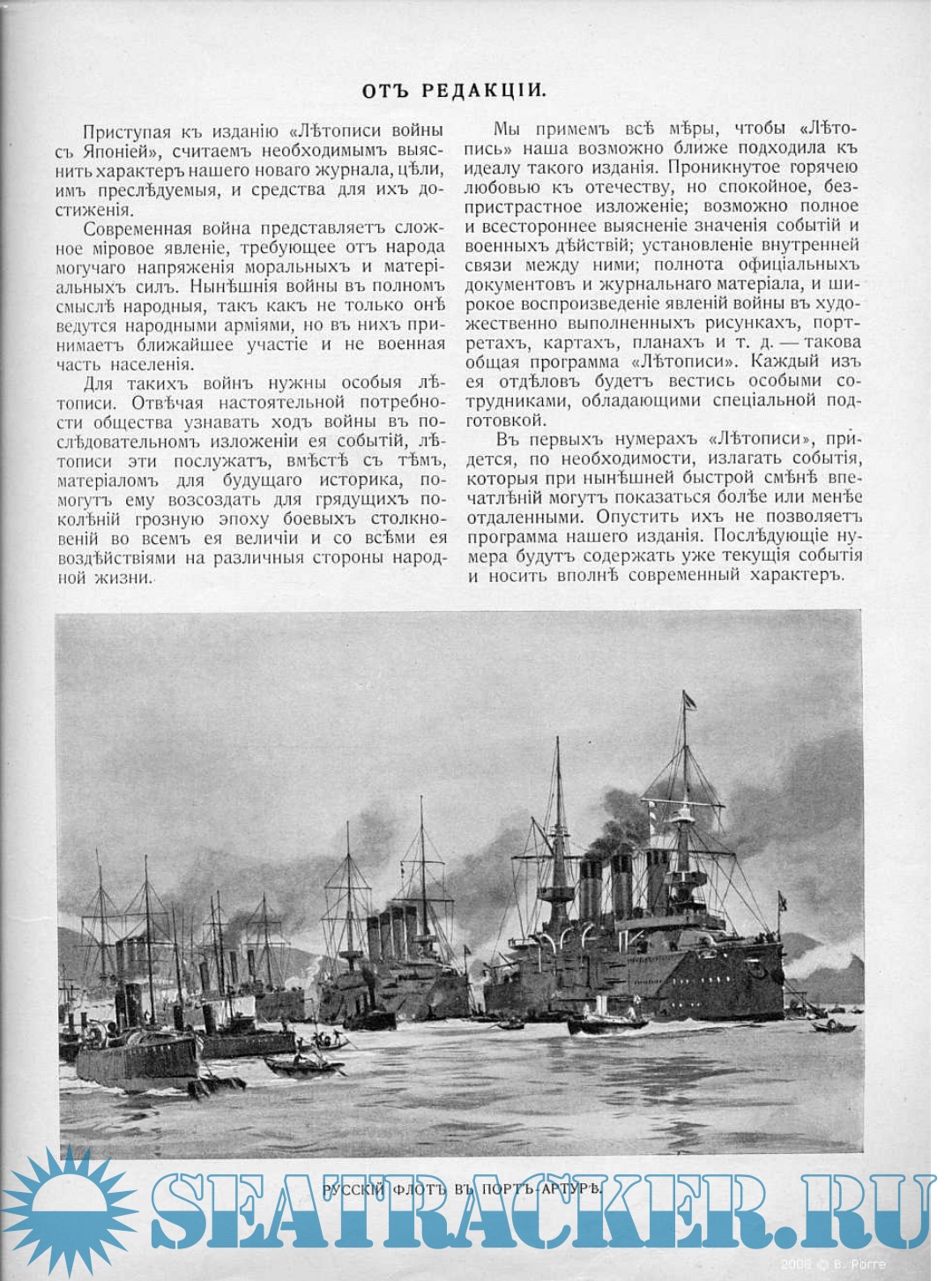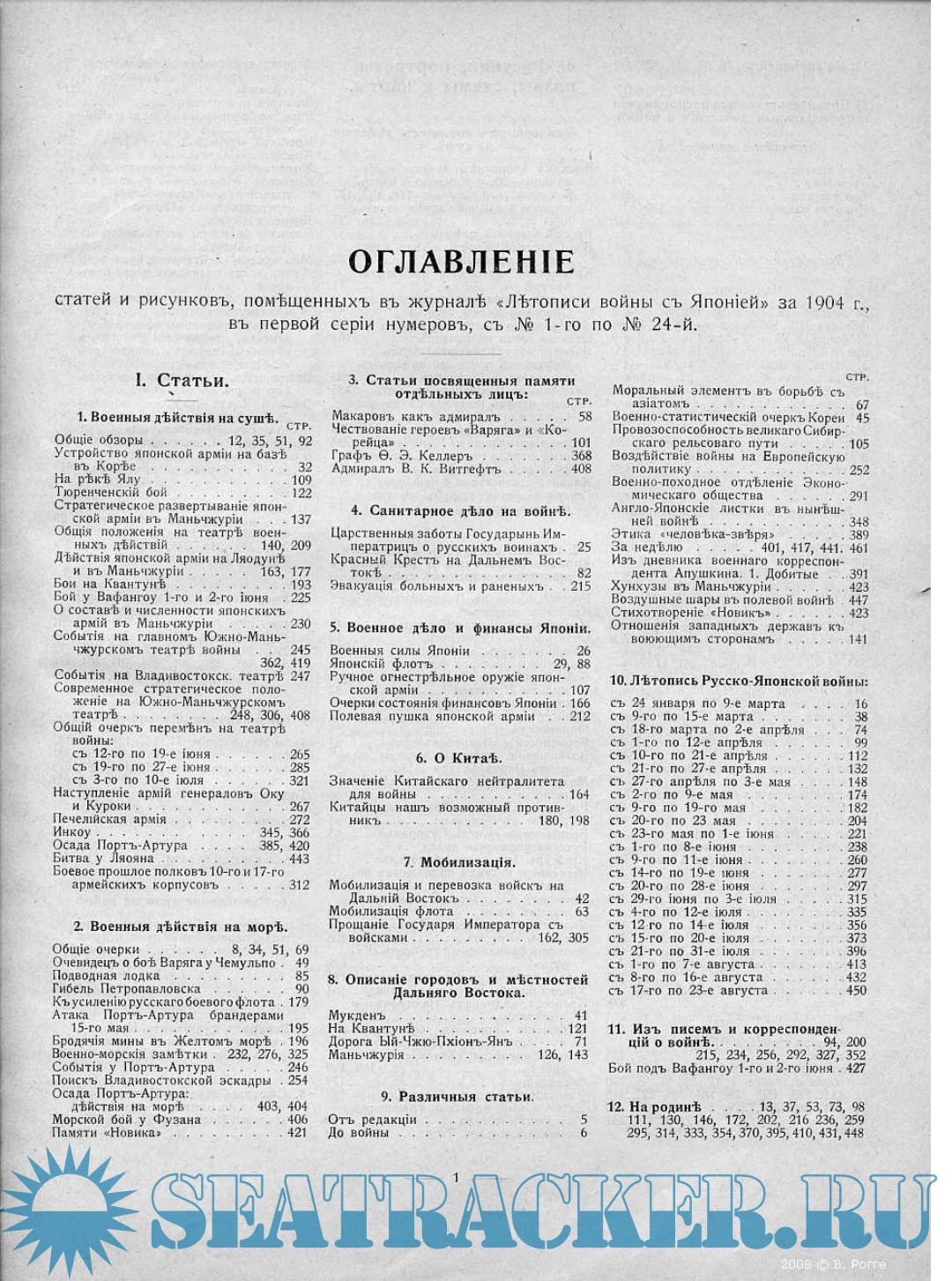 Год выпуска: 1904 - 1905 Язык: Русский Автор: Редактор-издатель полковник Дубенский Жанр: Периодическое издание (журнал) Издательство: Т-во Р. Голике и А. Вильборг Формат: PDF Качество: Отсканированные страницы Количество страниц: 24 Описание: Вашему вниманию представлена подборка журнала "Летопись войны с Японией" который издавался в с первого дня в течение всей войны, в 1904-1905 году и освещал события и персоналии событий тех дней. Полная подборка журналов публикуется впервые, она содержит очень много интересной информации о Русско-Японской войне, множество фотографий, информации о наградах, георгиевских кавалерах, военных операциях всех уровней и жизни простых русских солдат. Журнал издавался еженедельно в течение всей Русско-Японской войны. В журнале дается очень яркое, живое описание той войны. Много материалов о политической ситуации того периода. В каждом номере публиковались приказы, списки награжденных, списки потерь и множество других документов. Много уникальных фотографий (не только русских, но и японских) и превосходных рисунков фронтовых художников. В раздачу также входят оглавления для облегчения поиска и приложения с наградными списками. Категорически рекомендую всем, кто интересуется военной историей России. Много материала по боевым действиям на морском театре.