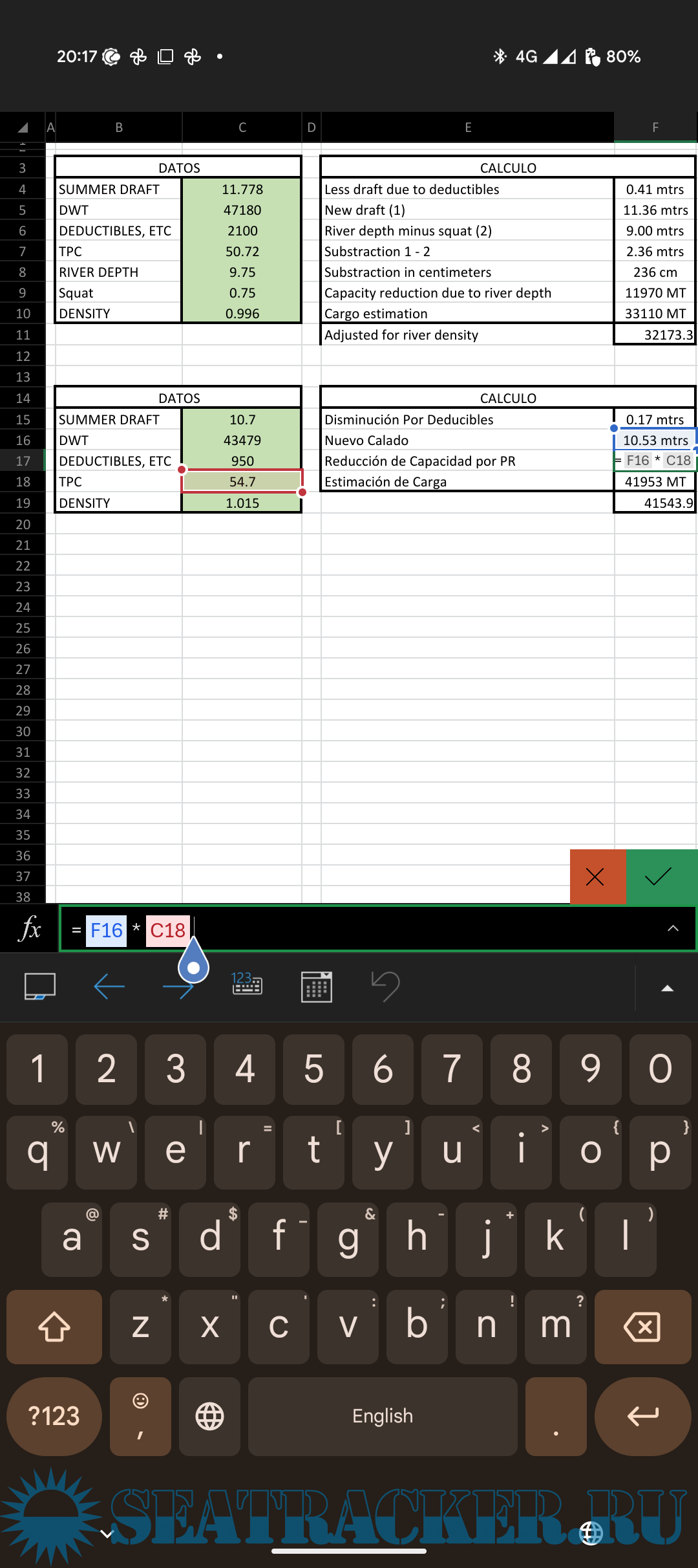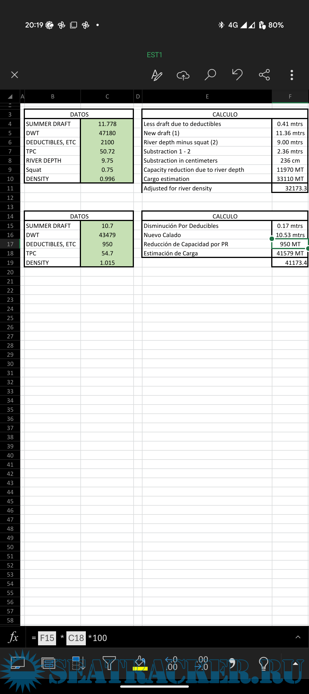 Draft Survey Calculations in MS Excel spreadsheets - Alexx [201x, XLS]