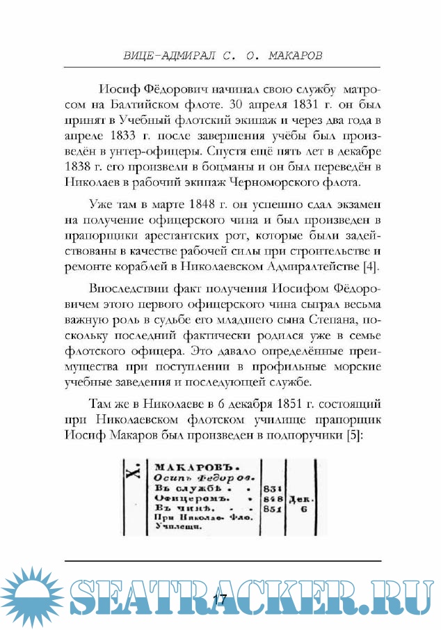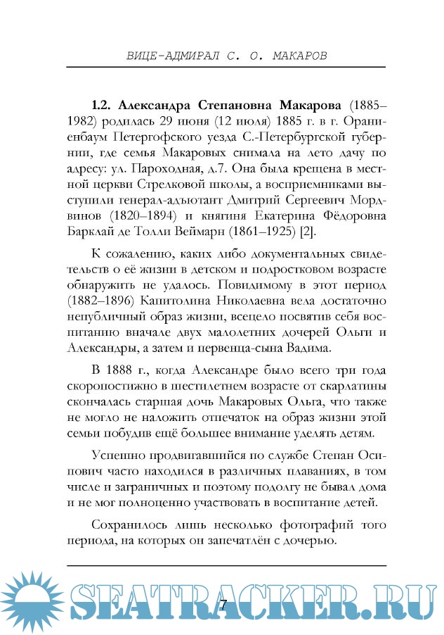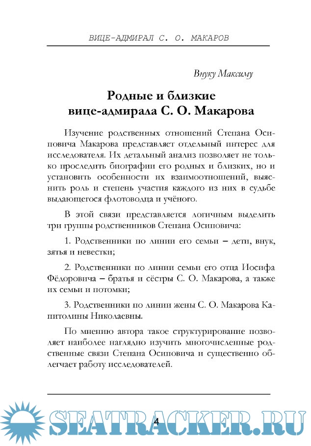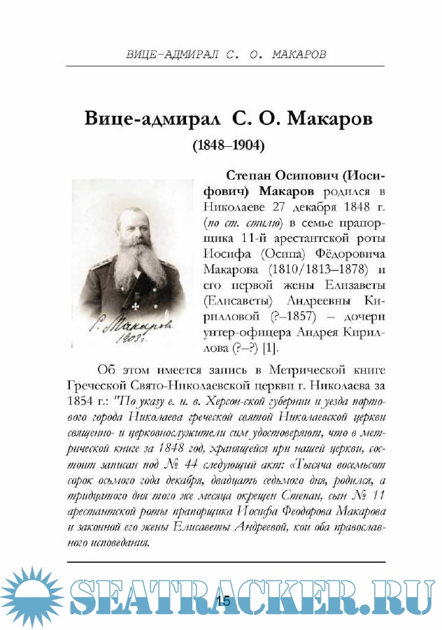 Первый том составляют материалы, которые непосредственно относятся к его жизни и деятельности, начиная от рождения и заканчивая трагической гибелью 31 марта 1904 г. на броненосце «Петропавловск» вблизи Порт-Артура.
