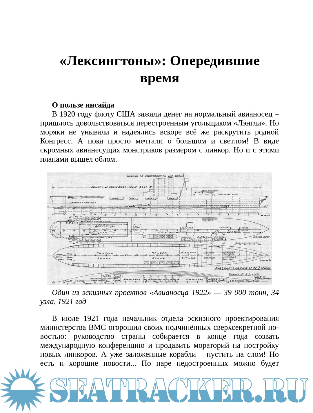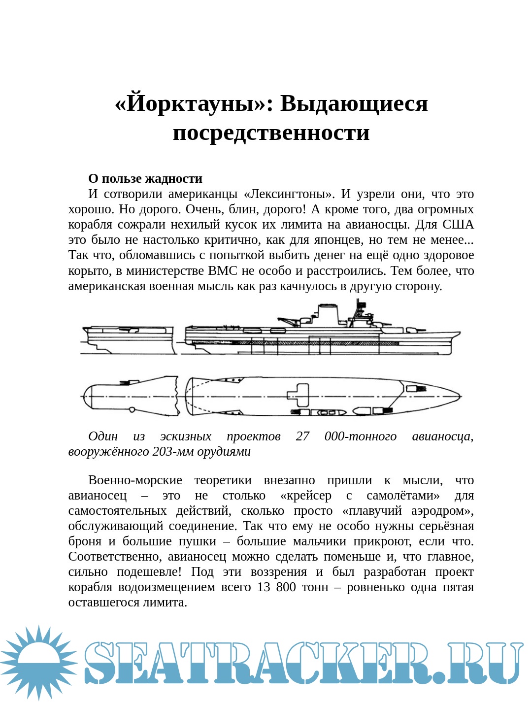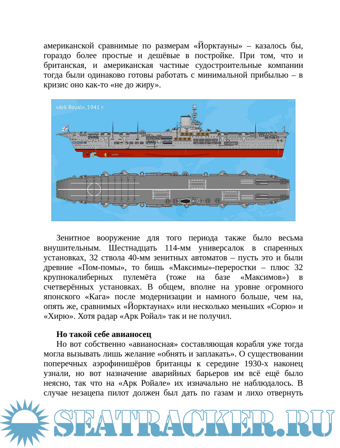 Описание: Любой авианосец это не только грозная гора железа, но и стоящая за ним интересная история. Попробуем вспомнить самые заметные корабли этого класса – от его зарождения и до конца Второй Мировой. История с прологом, эпилогом и даже некрологом, плюс сотни фотографий, иллюстраций и схем.