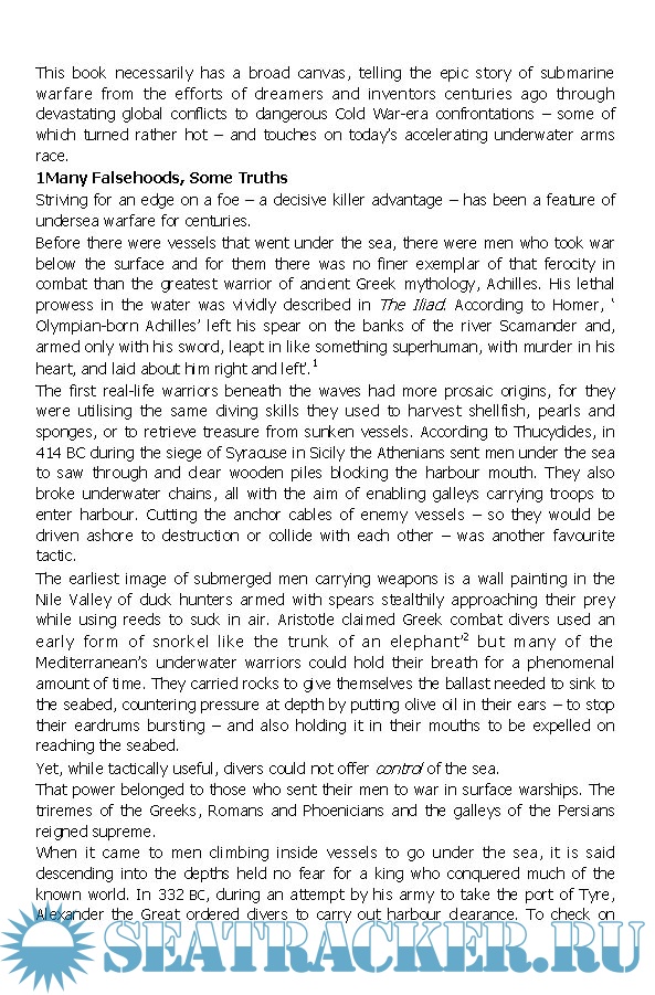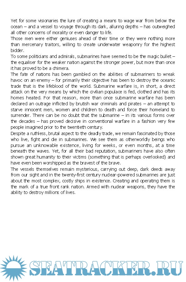 Year: 2018 Language: English Author: Iain Ballantyne Genre: Historical Publisher: Pegasus Books Format: EPUB Quality: eBook Pages count: 720 Description: The fascinating story of the submarine’s evolution from its ancient beginnings to its culmination as the deadliest vessel ever invented. A fascinating and comprehensive account of how an initially ineffectual underwater boat―originally derided and loathed in equal measure―evolved into the most powerful and terrifying vessel ever invented―with enough destructive power to end all life on Earth. Iain Ballantyne considers the key episodes of submarine warfare and vividly describes the stories of brave individuals who have risked their lives under the sea, often with fatal consequences. His analysis of underwater conflict begins with Archimedes discovering the Principle of Buoyancy. Our clandestine journey then moves through the centuries and focuses on prolific characters with deathly motives, including David Bushnell, who in 1775 in America devised the first combat submarine with the idea of attacking the British. Today, nuclear-powered submarines are among the most complex, costly ships in existence. Armed with nuclear weapons, they have the ability to destroy millions of lives: they are the most powerful warships ever created. At the heart of this thrilling narrative lurks danger and power as we discover warfare's murkiest secrets.