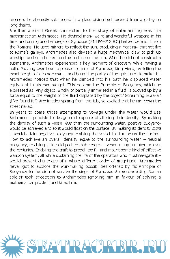 Iain Ballantyne considers the key episodes of submarine warfare and vividly describes the stories of brave individuals who have risked their lives under the sea, often with fatal consequences. His analysis of underwater conflict begins with Archimedes discovering the Principle of Buoyancy. Our clandestine journey then moves through the centuries and focuses on prolific characters with deathly motives, including David Bushnell, who in 1775 in America devised the first combat submarine with the idea of attacking the British.