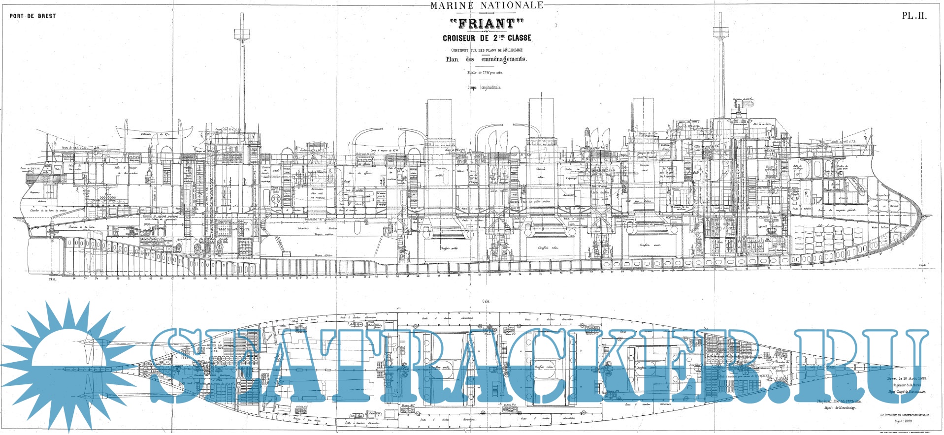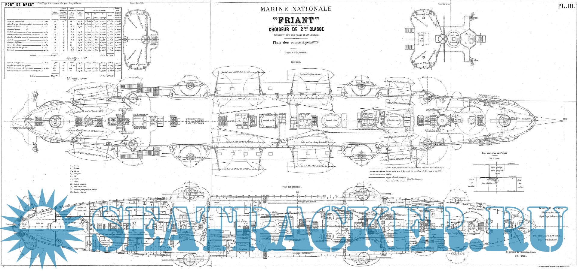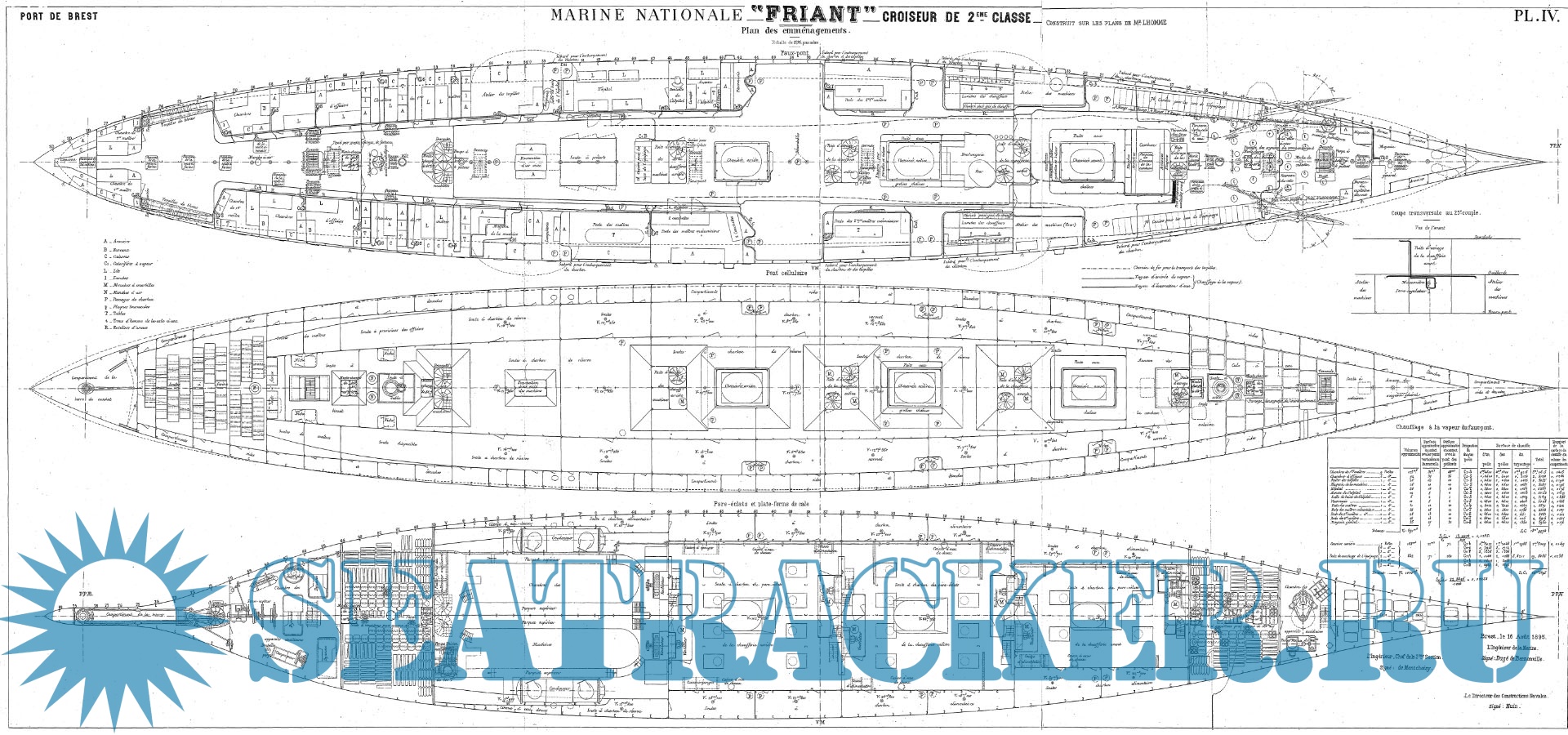 Архивные чертежи французского крейсера 2-го ранга FRIANT 1893 год