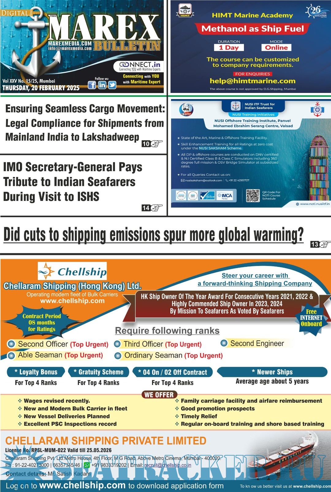 The Leading magazine for seafarers to locate Ship-board Employment opportunities, Training Institutes, Shipping companies.