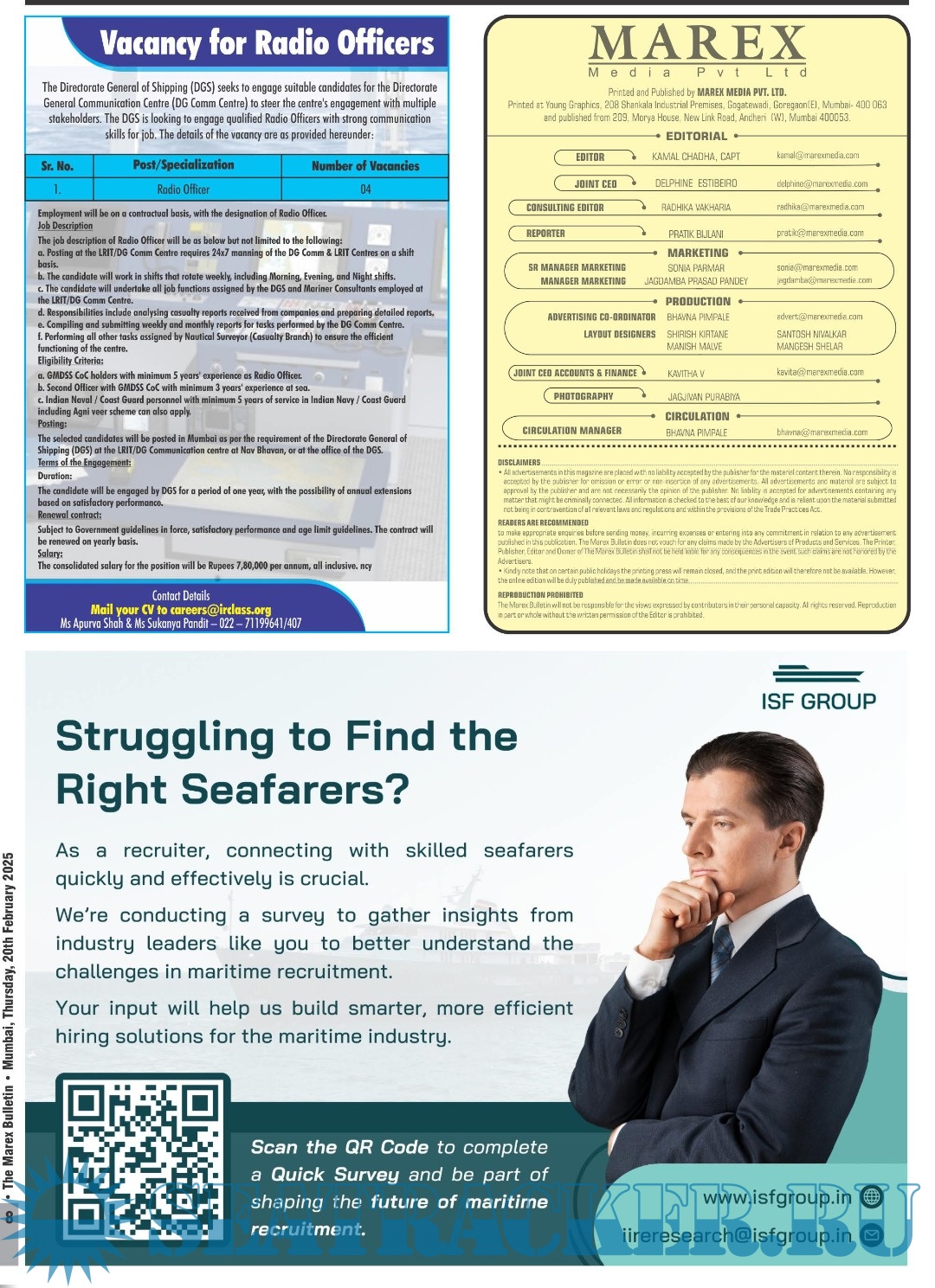 Description: The No 1 Twice weekly employment magazine for Seafarers.
