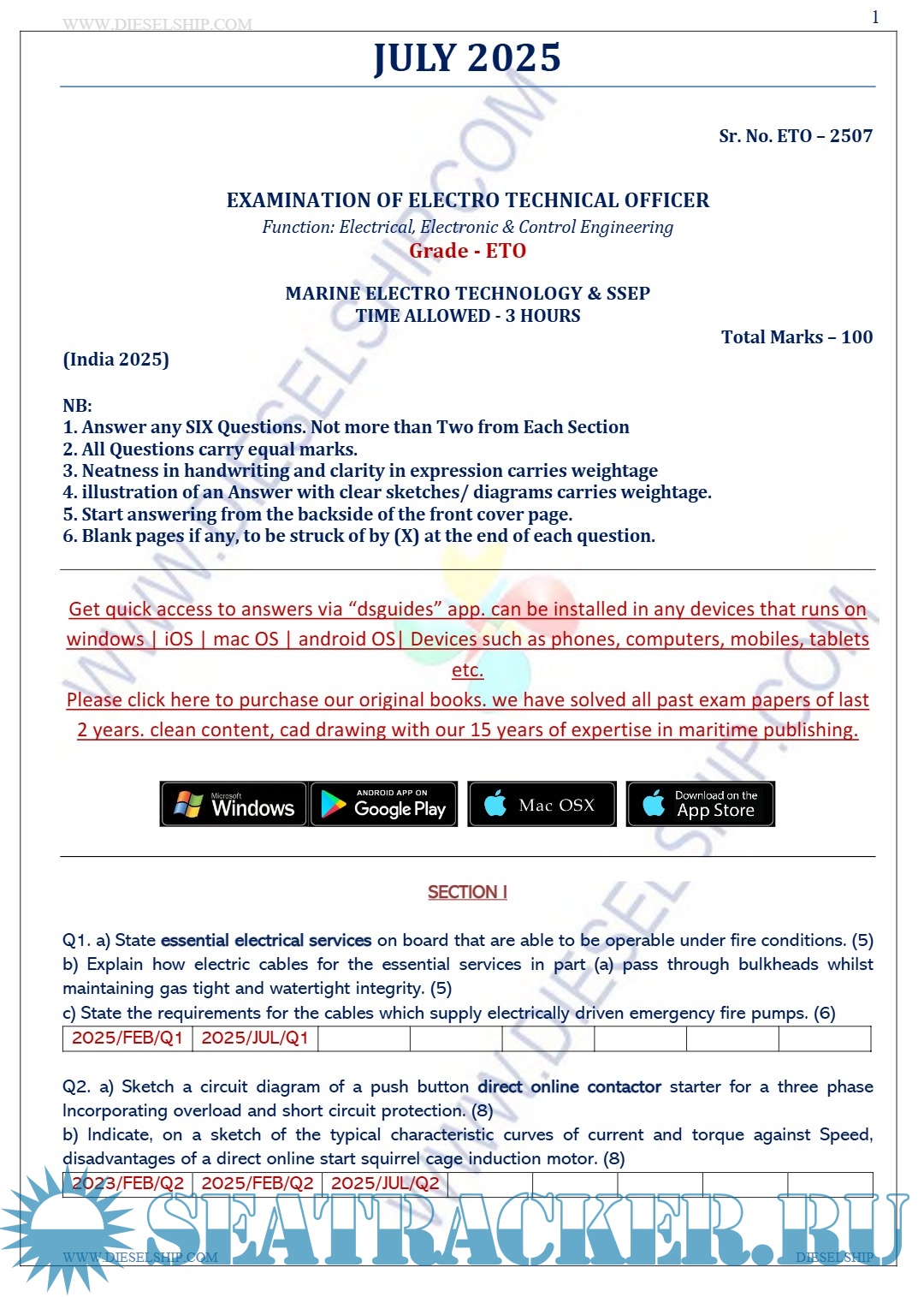 Year: 2025 Language: English Author: Dieselship Format: PDF Quality: eBook Pages count: 176 Description: Question Paper Set for Electro Technical Officer (E.T.O) MMD Examinations, India