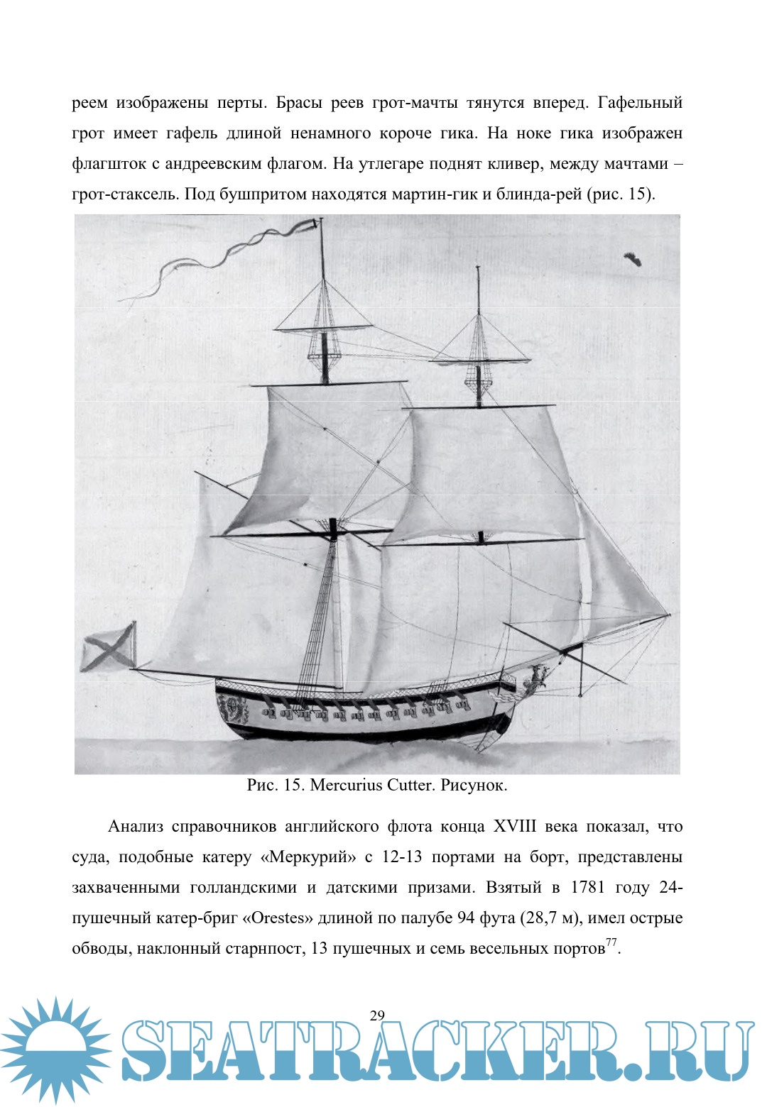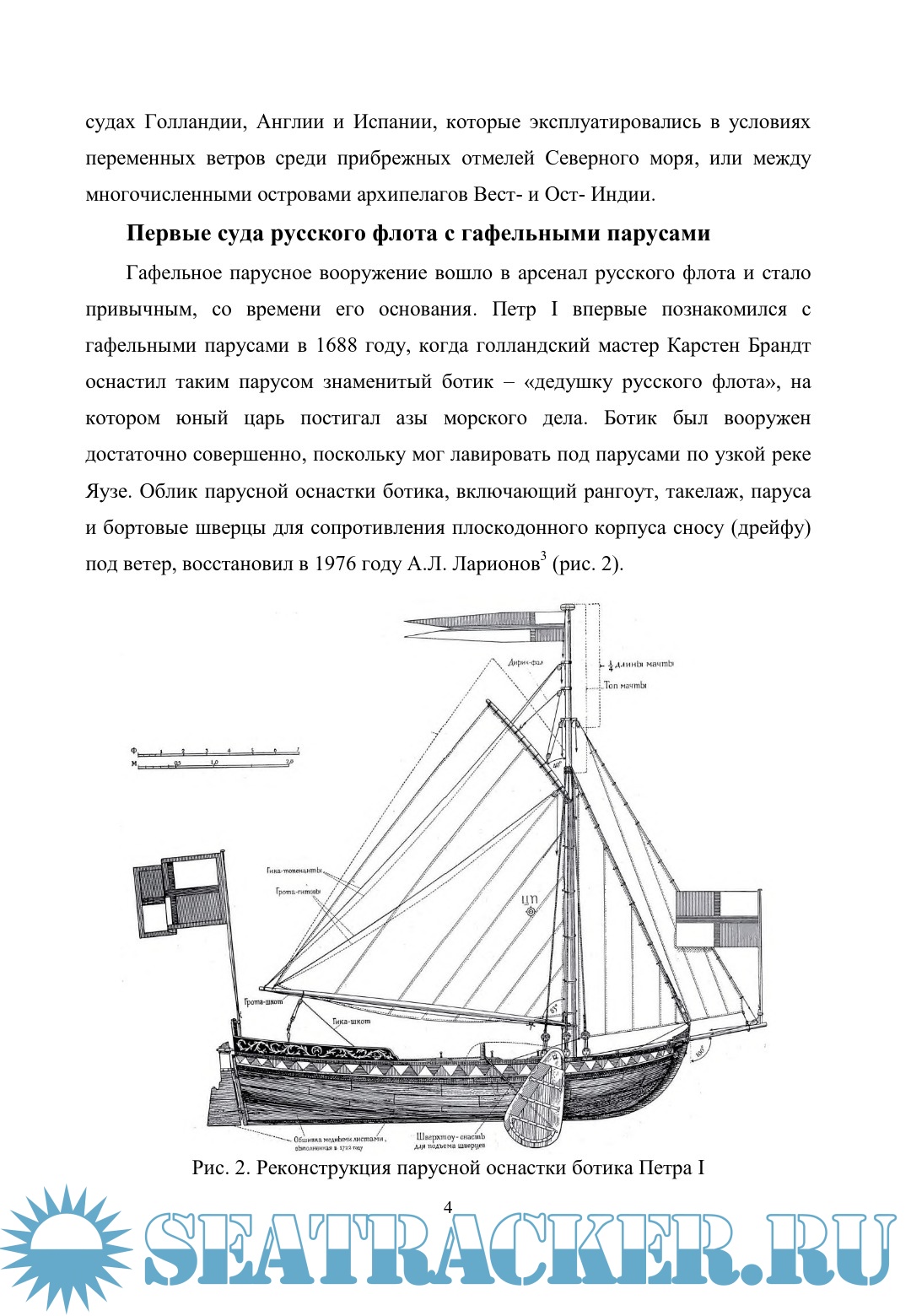 Описание: Рассмотрено использование гафельных парусов на разных типах судов русского флота.