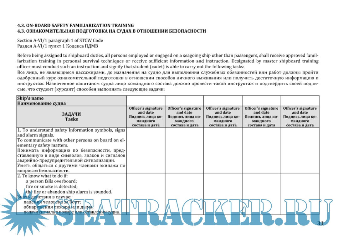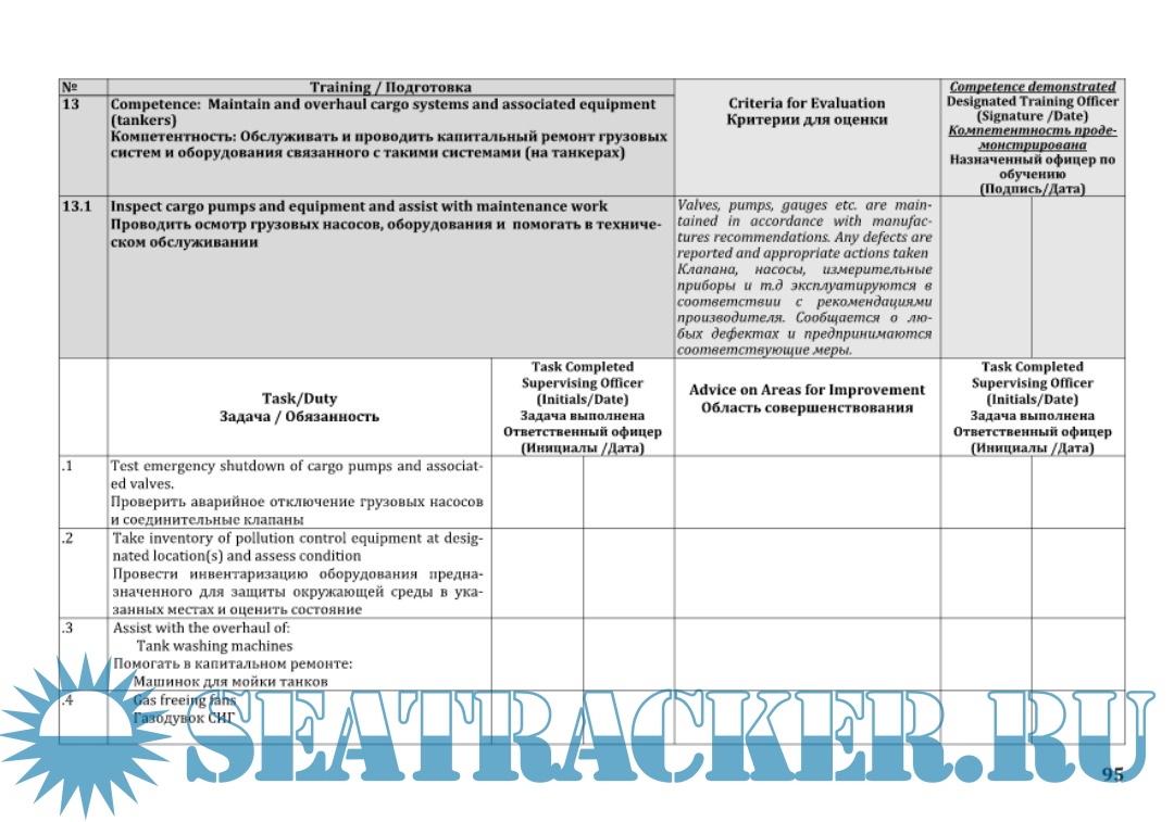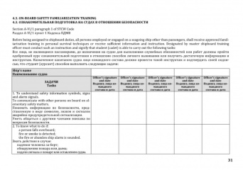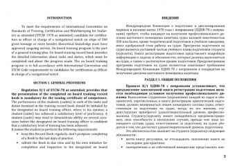 Год выпуска: 2014 Язык: Русский, Английский Автор: А. Л. Боран-Кешишьян Жанр: Documentation Издательство: НГМА Формат: PDF Качество: Отсканированные страницы Количество страниц: 137 Описание: Книга регистрации практической подготовки предназначена для документирования судовой практики вахтенного помощника капитана (практиканта-судоводителя) в соответствии с требованиями Конвенции ПДНВ-78 с поправками. В ней фиксируются все учебные мероприятия, навыки, оценки и подтверждения со стороны квалифицированных офицеров и капитана судна. Книга обеспечивает подготовку к сертификации на должность офицера, ответственного за навигационную вахту на судах валовой вместимостью 500 рег. тонн и более, поддерживает высокий уровень профессиональных компетенций и соблюдение международных стандартов безопасности на море.-The onboard training record book is designed to document the practical training of deck cadets in compliance with the STCW Convention 1978, as amended. It records all training activities, skills, assessments, and endorsements by qualified officers and the ship’s master. The book supports preparation for certification as an Officer in Charge of a Navigational Watch on ships of 500 gross tonnage or more, ensuring professional competence and adherence to international maritime safety standards.