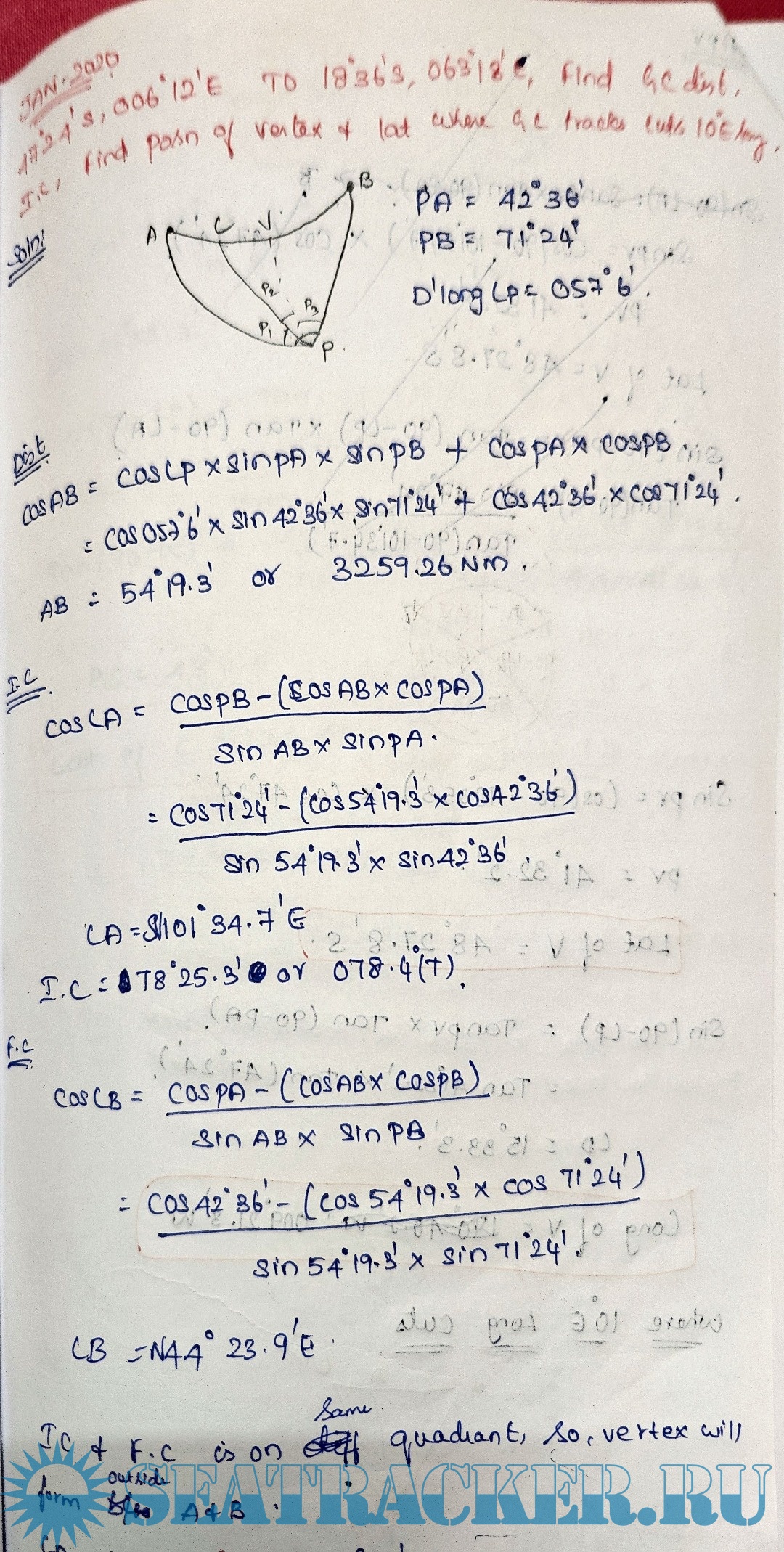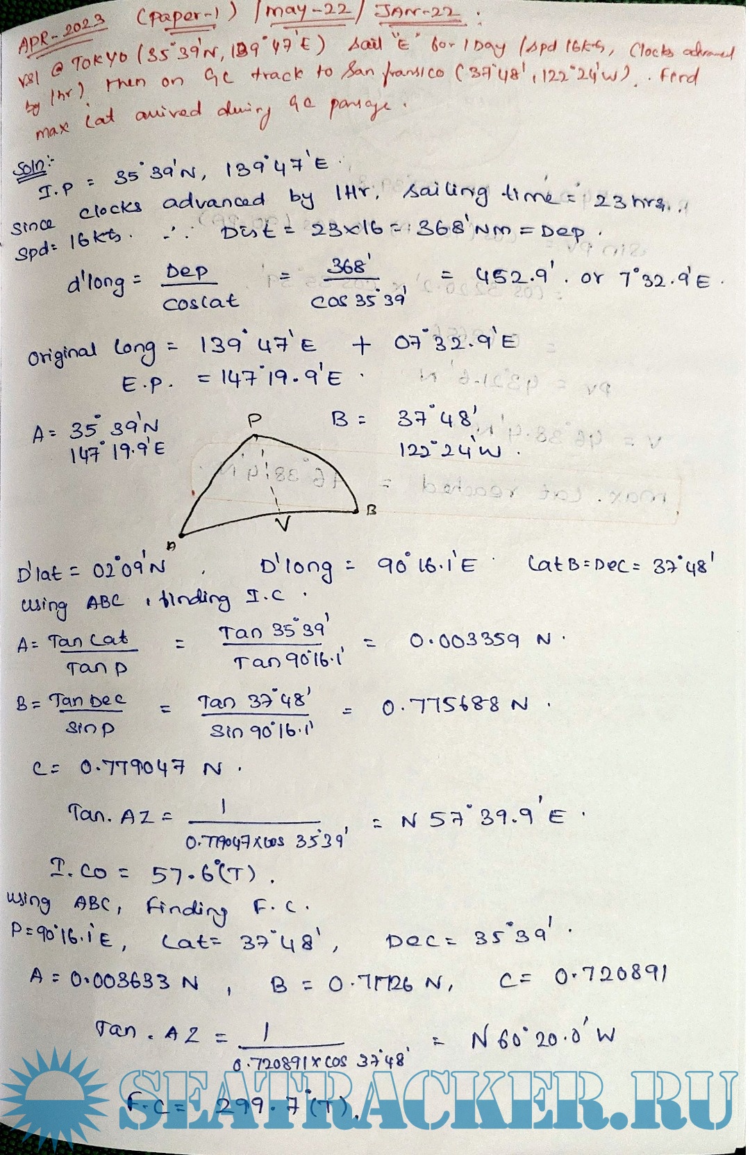 Solved Great Circle Sailing (Oct 2024 ~ Jan 2020) from Past Question Papers of Mercantile Marine Department (MMD), India Examinations