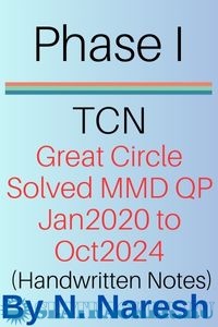 Year: 2024 Language: English Author: N. Naresh Format: JPEG Quality: Photos of pages Pages count: 42 Description: Stream: Phase I Subject: Terrestrial & Coastal Navigation (Handwritten Notes) Solved Great Circle Sailing (Oct 2024 ~ Jan 2020) from Past Question Papers of Mercantile Marine Department (MMD), India Examinations Additional info: https://seatracker.club/viewtopic.php?t=66915 https://seatracker.club/viewtopi...?p=110135#110135