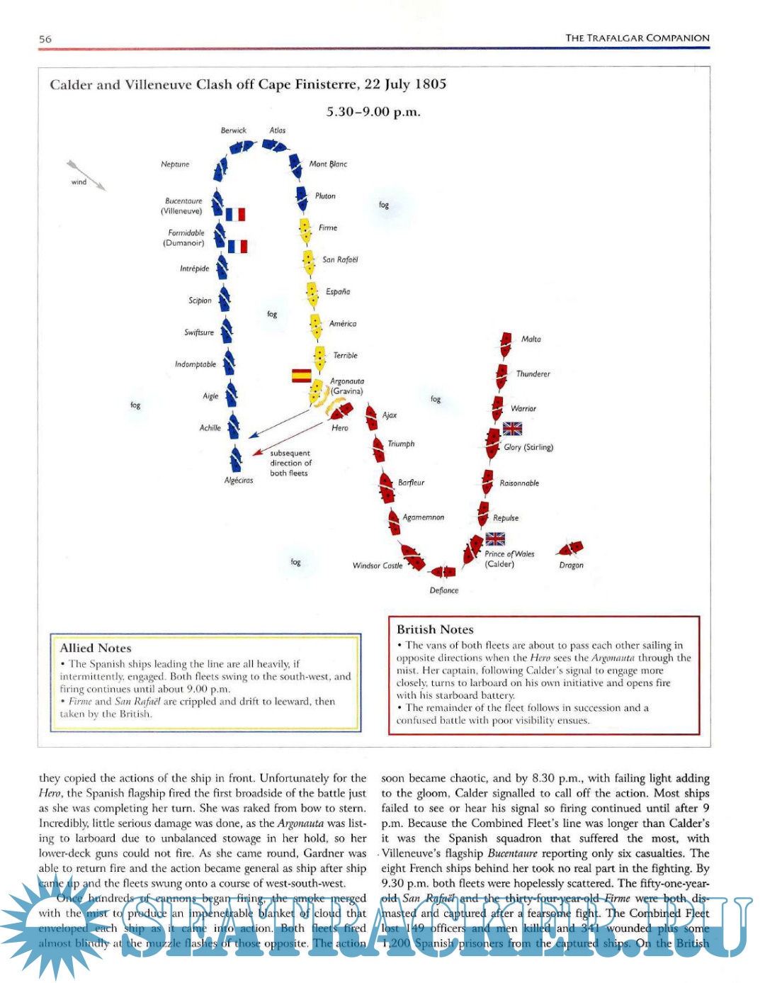 Year: 2005 Language: English Author: Adkin M. Genre: Historical Publisher: Aurum Press Format: PDF Quality: eBook Pages count: 568 Description: On October 21 1805, a British fleet led by Admiral Lord Nelson effectively crippled the combined fleets of Spain and France off of Spain's Cape Trafalgar—crushing Napoleon Bonaparte's dream of invading and conquering Britain. Despite suffering a mortal wound during the battle, Nelson secured his place in history with this victory, as well as ensuring Britain's century-long naval dominance of the Continent. This book is both a battle history and Nelson's biography. There are sections detailing every conceivable aspect of nautical life in the 19th century—ships and seamanship, guns and tactics, command and control, et al.—and sidebars sprinkled throughout the narrative present anecdotes, vignettes and little-known facts. In addition to its encyclopaedic coverage, the book is illustrated with hundreds of detailed maps and diagrams and drawings. The two-page, coloured drawings of many of the ships of both fleets—including Nelson's flagship, Victory—are painted in great detail.