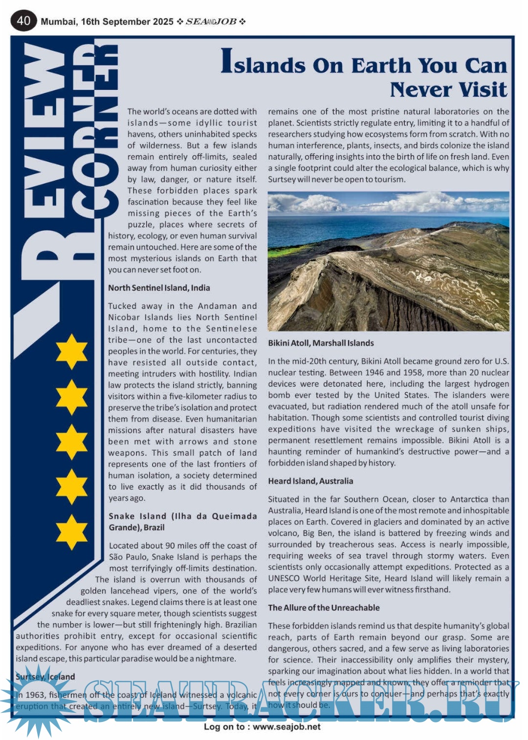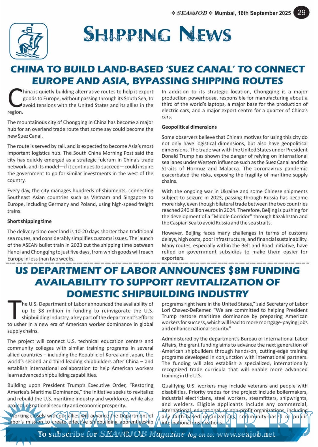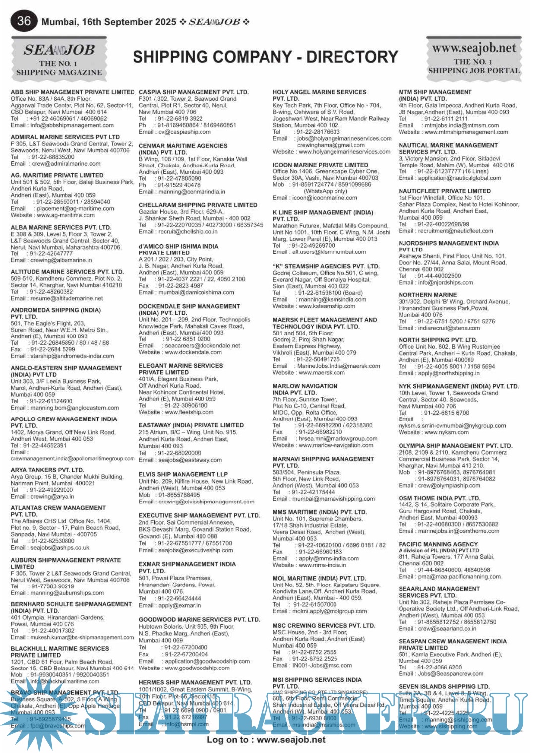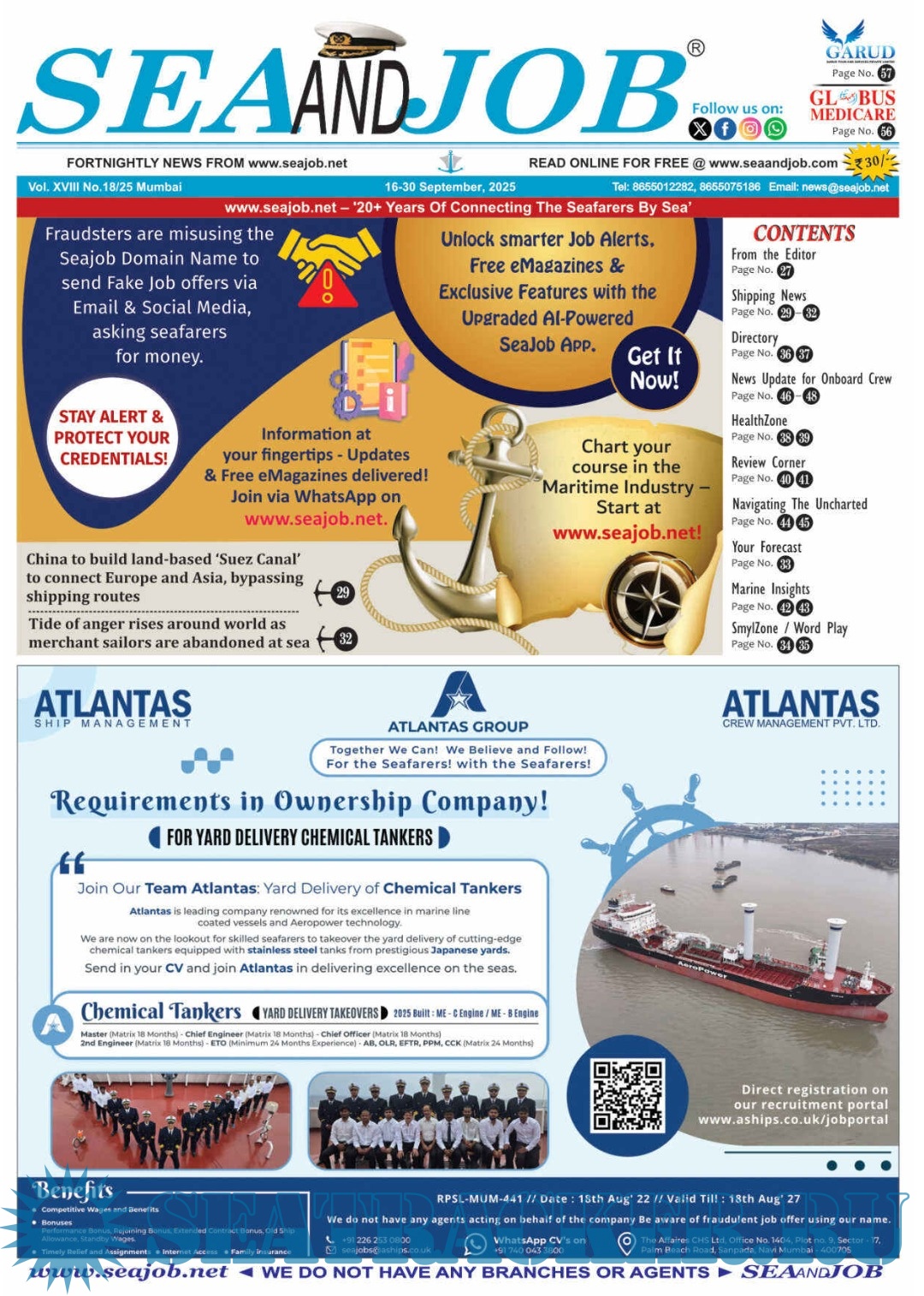 Year: 2025 Language: English Author: Sea Line Group Genre: Periodical (Magazine) Edition: Vol. XVIII, No. 18/25 Format: PDF Quality: eBook Pages count: 72 Description: he Sea and Job magazine launched in May 2007, was the second venture of Sea Line Group succeeding 'seajob.net' bringing the much renowned essence to the Group, the Sea and Job Magazine quickly gained popularity, becoming the No. 1 Shipping Magazine that came to be widely circulated all over India.Sea and Job over the years has evolved as the most trusted, ethical, objective and read maritime publication that possesses a large database of subscribers from various verticals in the industry.The magazine provides informative and interesting articles covering not just the shipping world but also the world outside it. Sea and Job is also a medium for the shipping/ manning companies to advertise marine jobs and also to promote their organization by publicizing internal activities like seminars, sports events and parties.Some notable endeavors of the magazine include the Know Your Recruiter Column, the Sailing Episodes Column and the Marine Insights section. The consistent efforts and the dedication to provide extraordinary services to the industry has resulted in the magnifying popularity and patronage of Sea and Job. Additional info: 16-30 September 2025.
