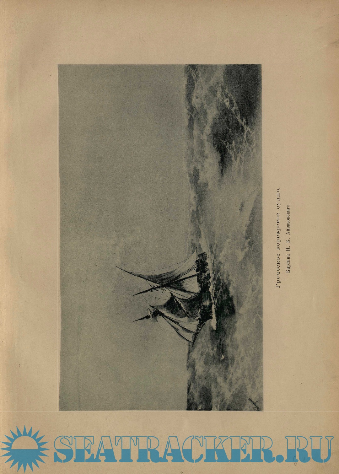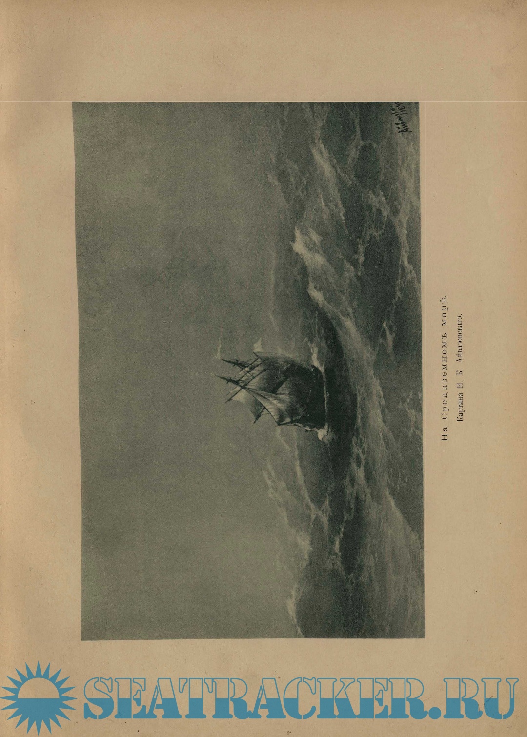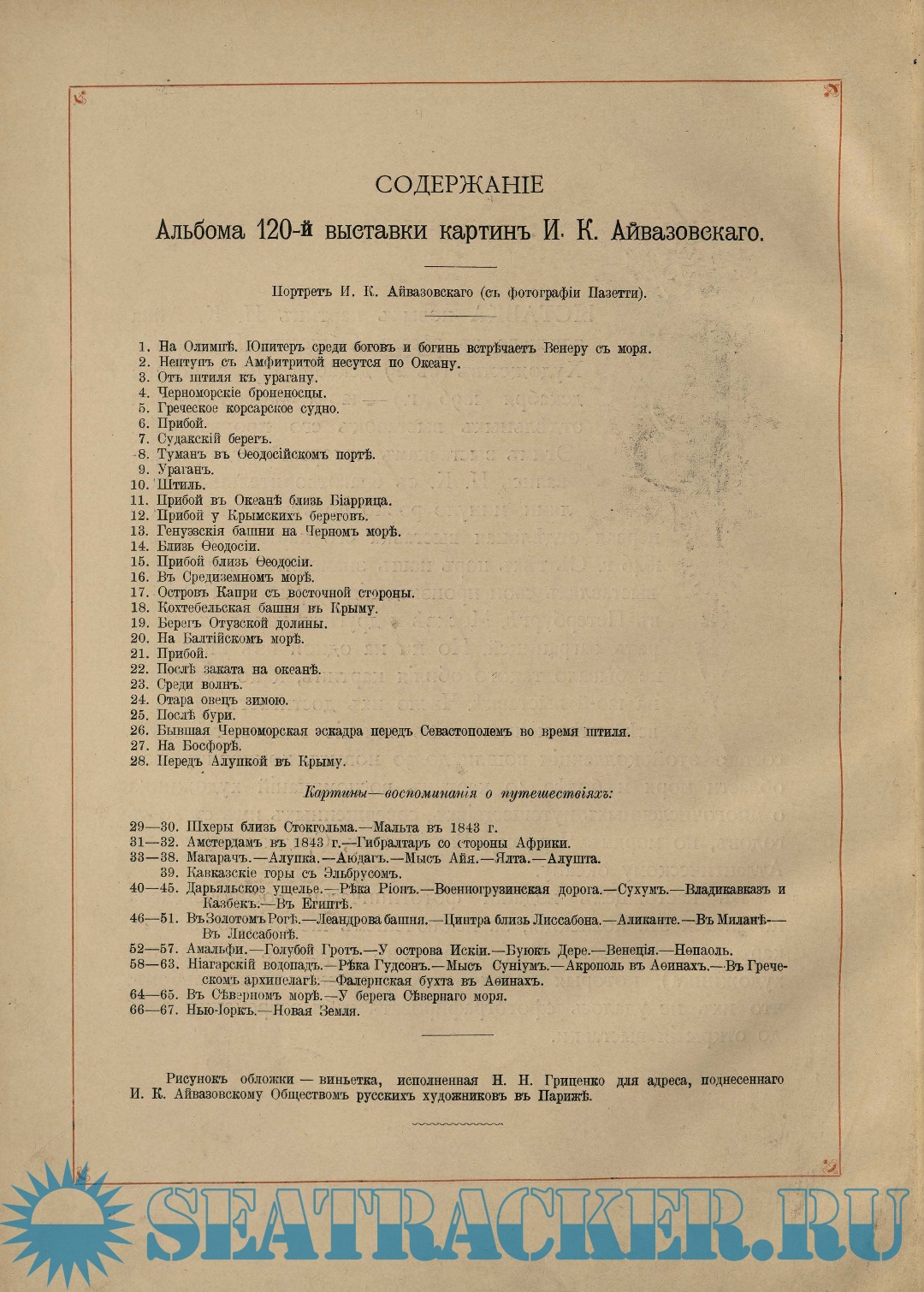 Рисунокъ обложки — виньетка, исполненная Н.Н. Грипенко для адреса, поднесеннаго И.К. Айвазовскому Обществомъ русскихъ художниковъ въ Парижѣ.