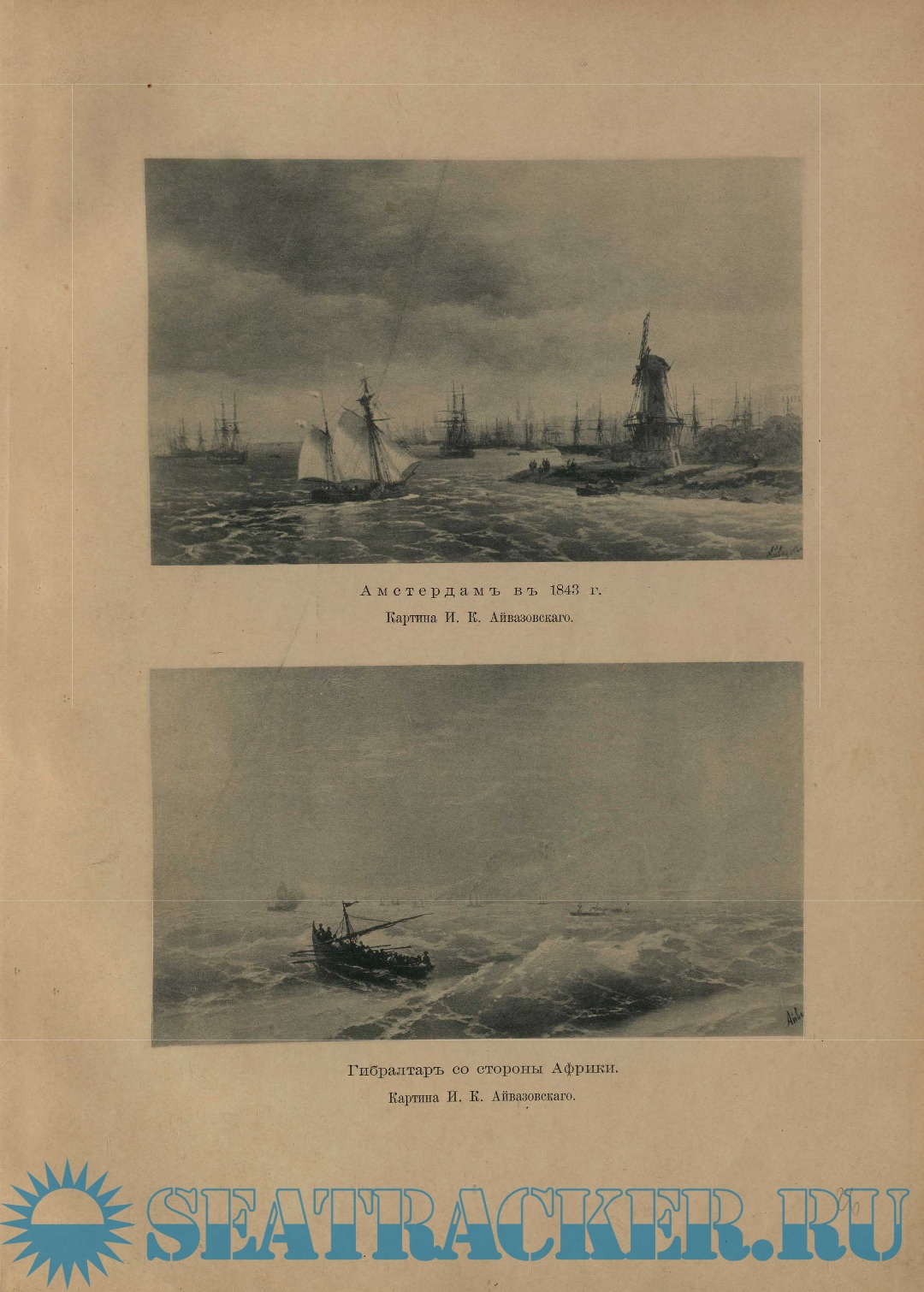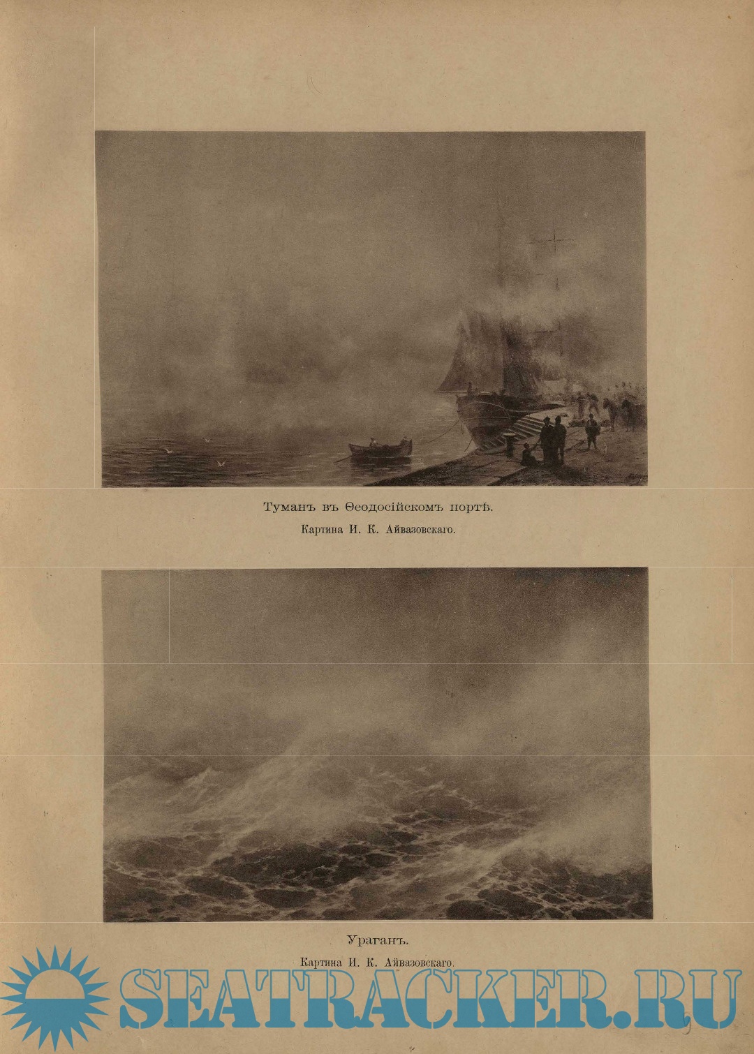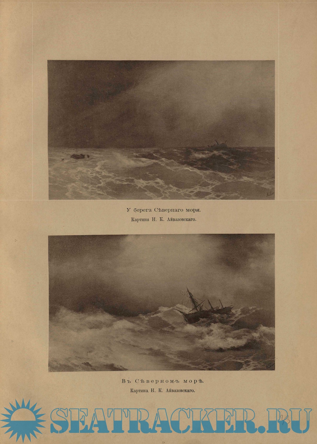 Рисунокъ обложки — виньетка, исполненная Н.Н. Грипенко для адреса, поднесеннаго И.К. Айвазовскому Обществомъ русскихъ художниковъ въ Парижѣ.