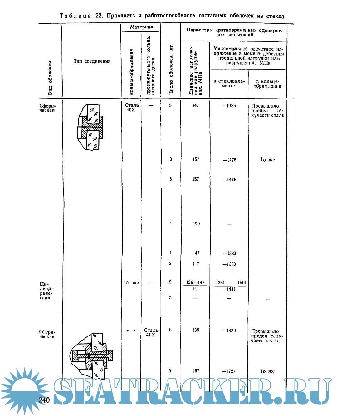 керамики. Приведены результаты, доказывающие реальную возможность использования серийно выпускаемых промышленностью изделий из стекла в составных оболочках, надежно эксплуатируемых при высоком внешнем давлении.