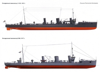 Описание: История этих кораблей берет свое начало 29 декабря 1912 г. (по старому стилю), когда петербургская Путиловская верфь получила заказ на постройку восьми эскадренных миноносцев |35-узловой скорости” типа “Лейтенант Ильин” , являвшихся развитием знаменитого “Новика”, а судостроительный завод Русско-Балтийского общества в Ревеле - на шесть аналогичных эсминцев типа “Гавриил”.