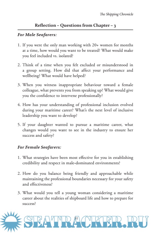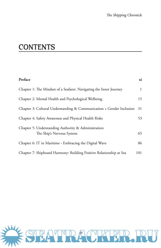 Year: 2025 Language: English Author: MARCEL ANTO and GHANAPATHY RAM K S Format: PDF Quality: eBook Pages count: 140 Description: This book is intended as a general educational guide for seafarers. Please read these important notices: Professional Guidance • This content does not replace official maritime training, company procedures, or regulatory requirements • Always follow your vessel’s Safety Management System (SMS) and official procedures • Consult qualified professionals for serious safety or mental health concerns Mental Health Content • Mental health guidance is for general awareness only, not medical advice • Seek immediate professional help for severe symptoms, distress, or thoughts of self-harm • Contact emergency services or medical officers in crisis situations Cultural Information • Cultural descriptions are based on general observations and personal experience • They are not intended to stereotype individuals or entire nationalities • Every person is unique - treat colleagues as individuals, not cultural representativese Shipping Chronicle vi Technical and Regulatory Information • Maritime regulations and procedures change regularly - verify current requirements • Content may not apply to your specific vessel, equipment, or operating area • Always refer to official sources, classification societies, and manufacturer instructions Personal Experiences • Stories and examples reflect individual experiences and may not represent typical situations • Names and identifying details have been changed to protect privacy Limitation of Liability: The author and publishers make no warranties about the completeness or accuracy of this information and are not responsible for any actions taken based on this content or any resulting damages. Final Note: When in doubt, prioritize safety, follow established procedures, and seek guidance from qualified professionals. Your safety and that of your crewmates is paramount.