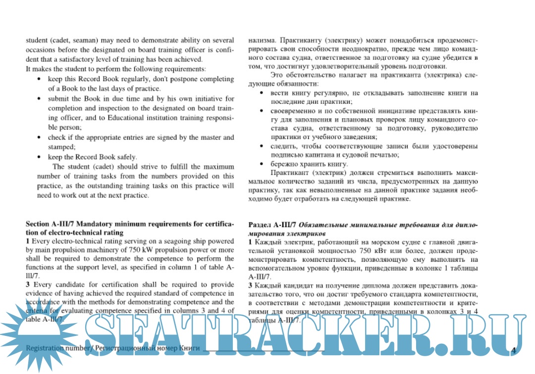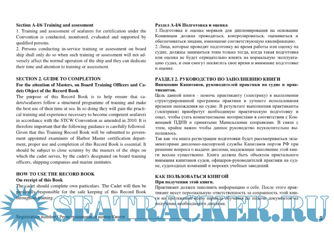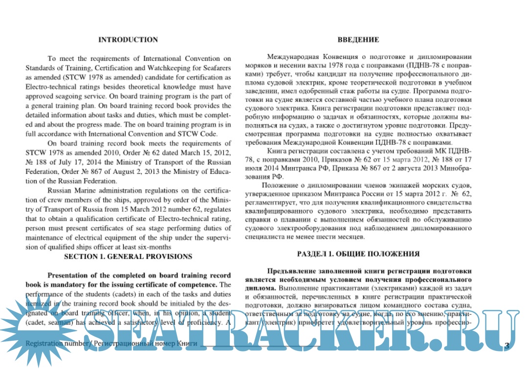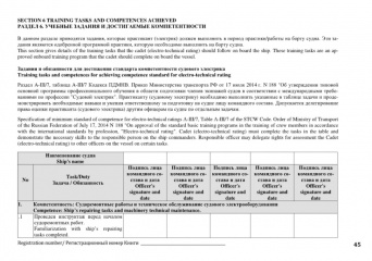 Год выпуска: 2015 Язык: Русский, Английский Автор: А. Л. Боран-Кешишьян, Д. В. Язов Издательство: НГМА Формат: PDF Качество: Отсканированные страницы Количество страниц: 72 Описание: Эта книга регистрации практической подготовки судовых электриков предназначена для структурирования обучения и контроля навыков моряков в соответствии с требованиями Международной Конвенции ПДНВ-78 с поправками (STCW 1978, amended 2010). Она объединяет теоретические знания и практический опыт, необходимый для получения квалификационного свидетельства электрика на морском судне. Книга детально описывает задачи и обязанности, которые должны выполняться под руководством опытного офицера, а также фиксирует уровень освоенных компетенций. Практикант обязан вести книгу регулярно, своевременно предоставлять её на проверку и обеспечивать достоверность записей. Руководители на борту и капитаны оценивают прогресс, подписывают записи и контролируют выполнение обязательных заданий. Книга охватывает обязательные требования для судовых электриков, включая работу на судах с мощностью главной установки 750 кВт и выше, а также фиксирует прохождение обязательного ознакомления с безопасностью и техническими характеристиками судна. Она является официальным документом, подтверждающим квалификацию и подготовку морского электрика.