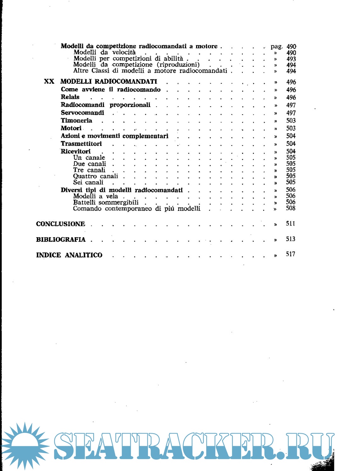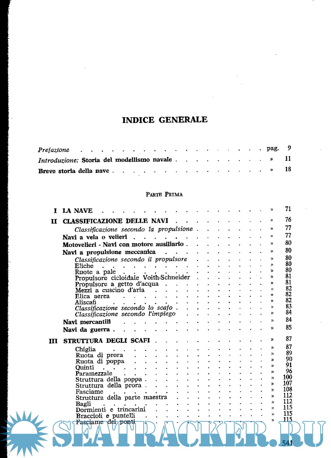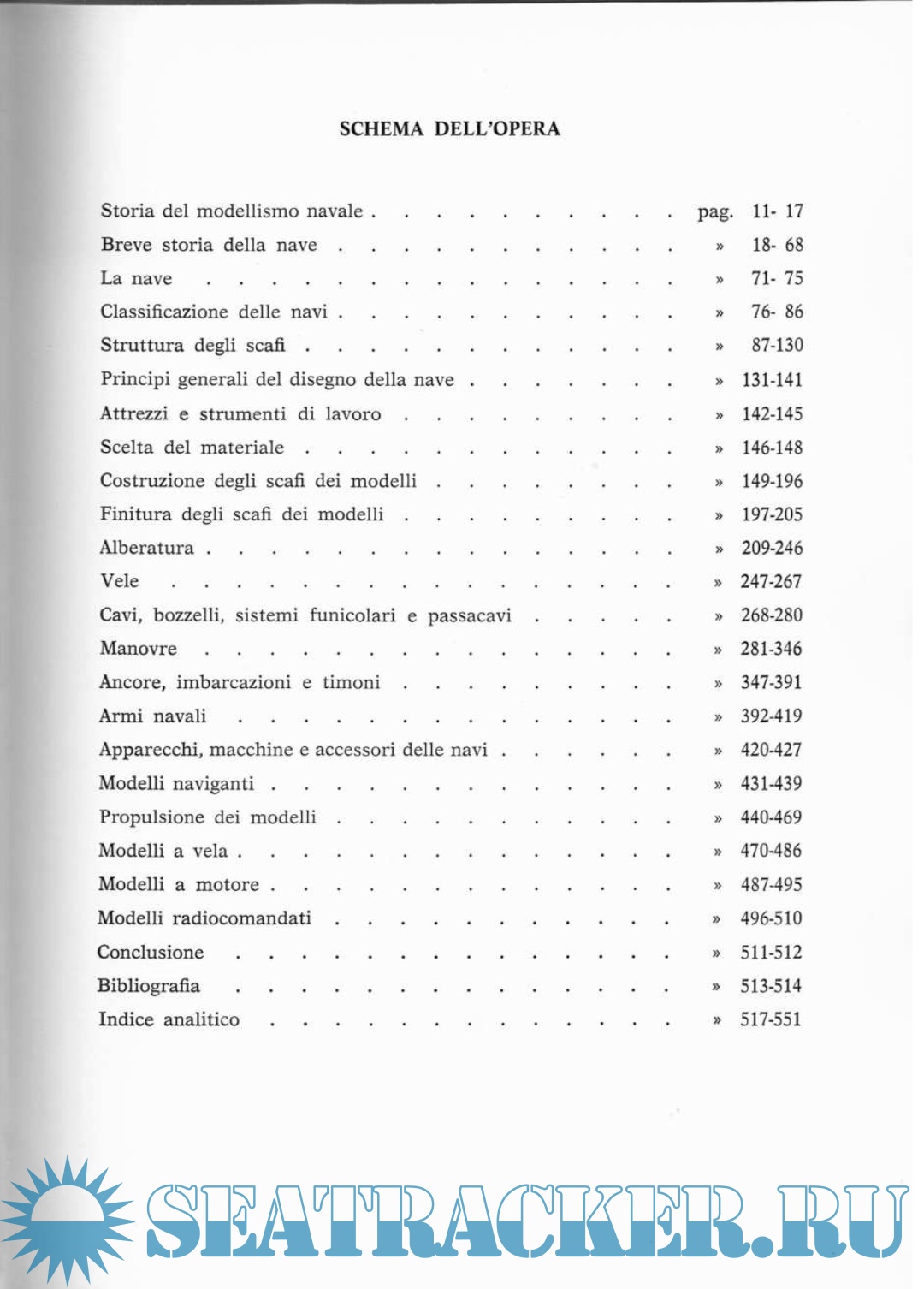Description: Storia del modellismo navale . Breve storia della nave La nave Classificazione delle navi . Struttura degli scafi Principi generali del disegno della nave . Attrezzi e strumenti di lavoro Scelta del materiale . Costruzione degli scafi dei modelli Finitura degli scafi dei modelli Alberatura . Vele Cavi, bozzelli, sistemi funicolari e passacavi Manovre Ancore, imbarcazioni e timoni Armi navali Apparecchi, macchine e accessori delle navi . Modelli naviganti . Propulsione dei modelli Modelli a vela . Modelli a motore . Modelli radiocomandati Conclusione.