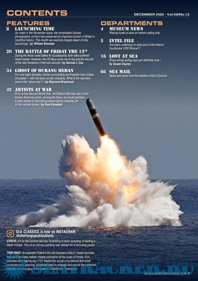 Description: Read about the world’s major sea battles and first-hand accounts from the men who fought and lived through them. From the early days of sailing vessels to the post-Cold War nuclear navies of today, Sea Classics has it all.