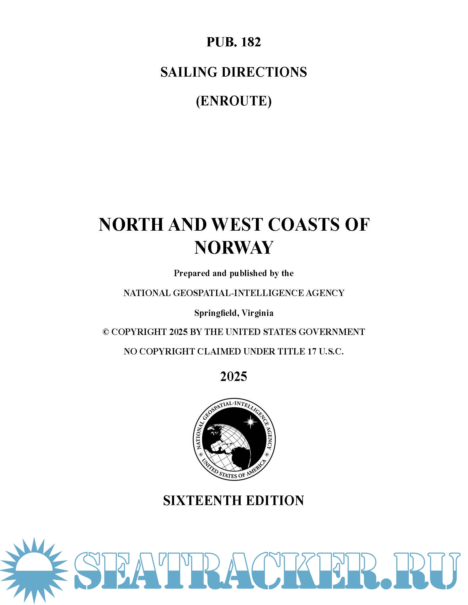 Description: Pub. 182, Sailing Directions (Enroute) North and West Coasts of Norway, Sixteenth Edition, 2025, is issued for use in conjunction with Pub. 180, Sailing Directions (Planning Guide) Arctic Ocean. Companion volumes are Pubs. 181 and 183.