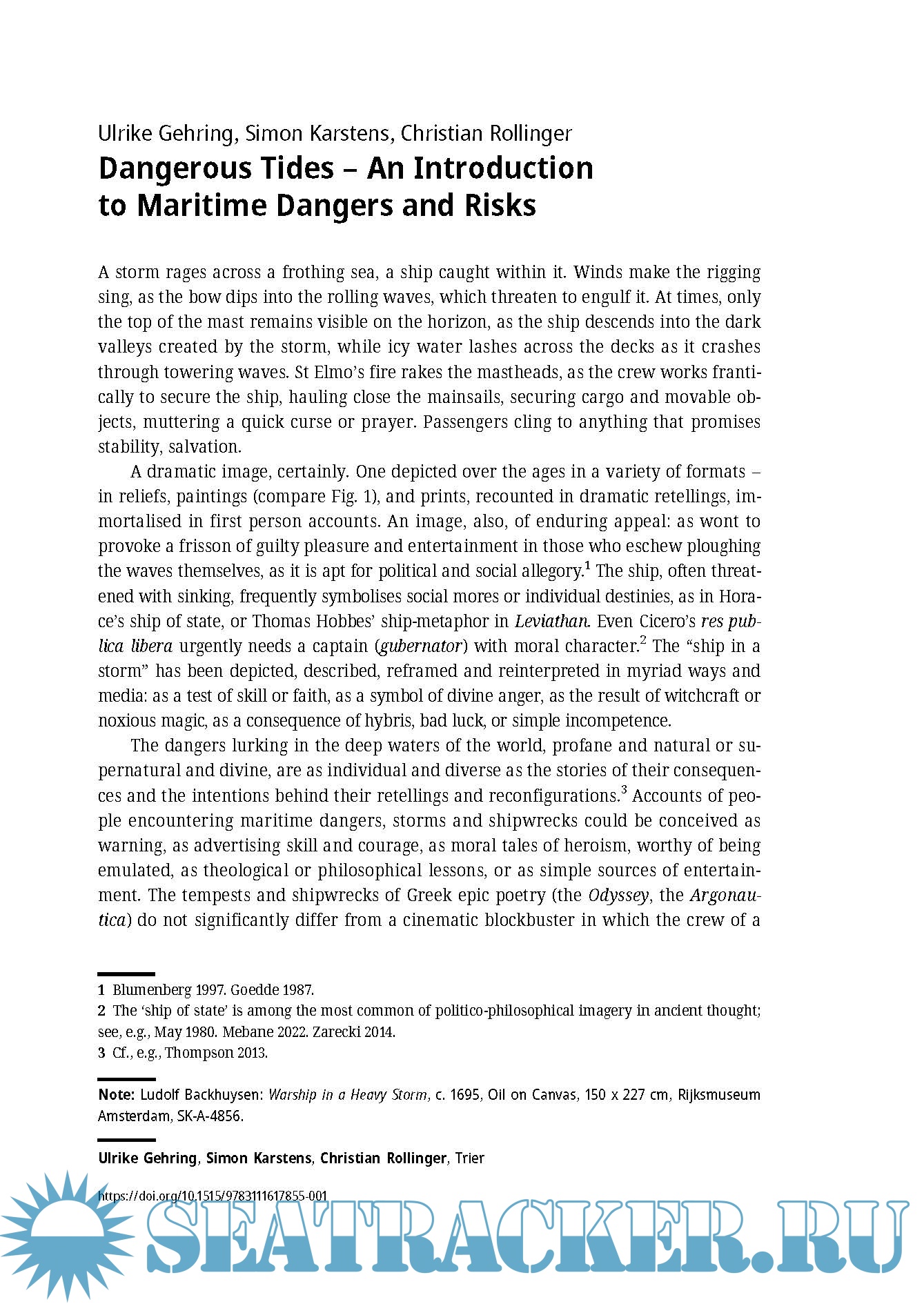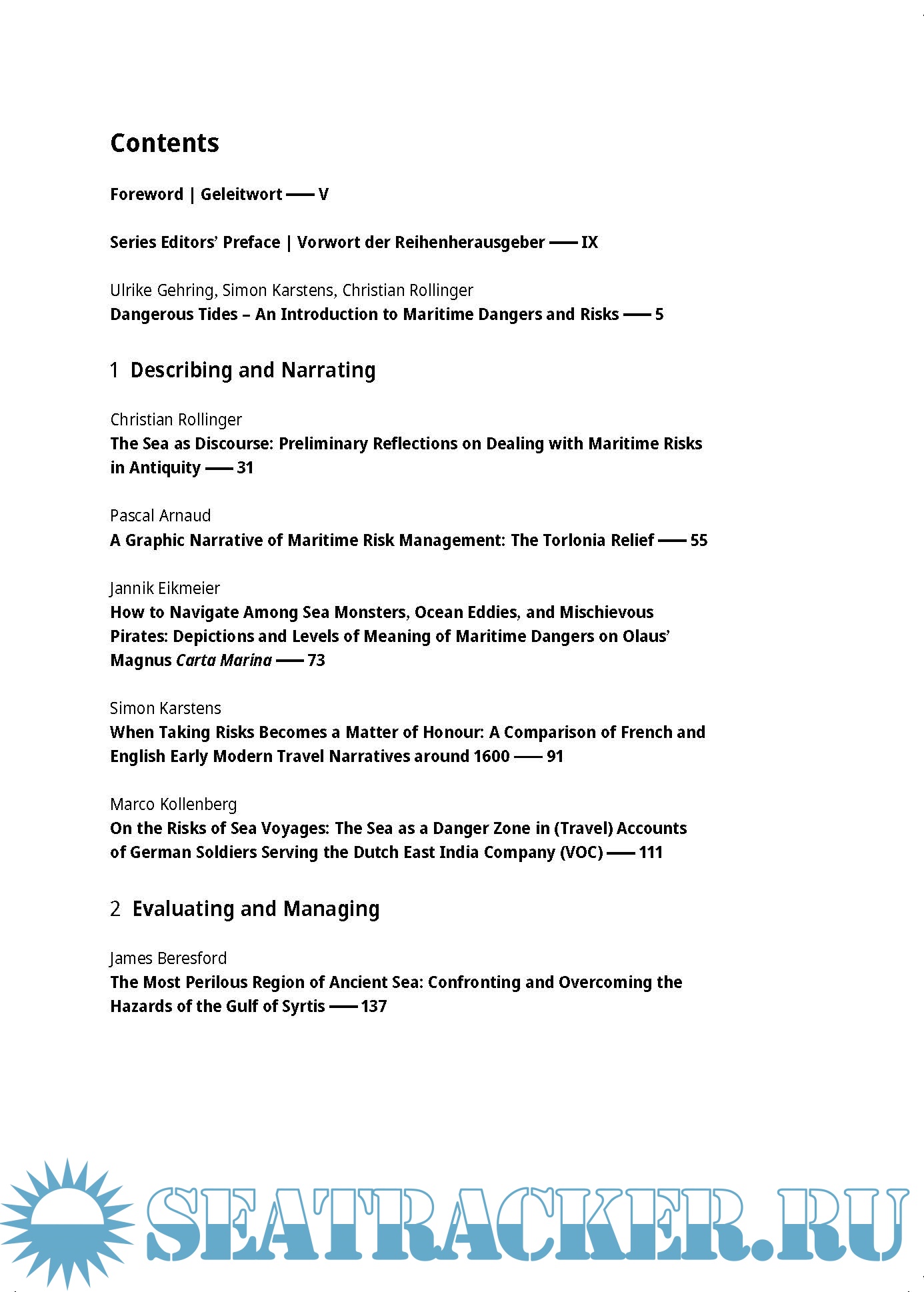 Description: The dangers and risks lurking in the deep waters of the world, be they profane and natural (storms, currents, shoals, cliffs, pirates) or divine and supernatural (the wrath of one or more gods, magic, sea monsters) are as individual and diverse as the stories of their consequences – and as numerous as the intentions behind these retellings and reconfigurations. In their telling, specific dangers become accepted risks that those who undertake the venture of a sea voyage choose (or not) to expose themselves to.