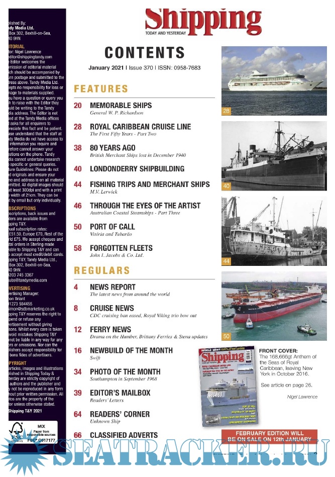 Description: Shipping T&Y is a monthly magazine for the shipping enthusiast offering up-to-date information,topical and in-depth historical articles alongside images, many of which are exclusive to the magazine.