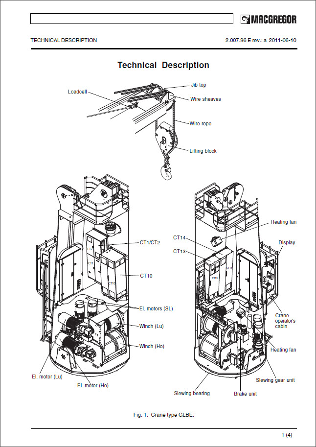 Every manual belongs to a specific crane or piece of equipment. The identification can be found on the label on the manual’s back. The manual contains nine sections. The various sections cover the following subjects:
