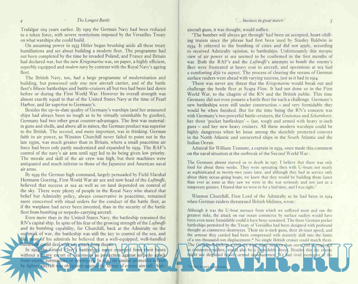 Year: 1986 Language: English Author: Richard Hough Genre: Historical Publisher: William Morrow & Company Format: PDF Quality: Scanned pages Pages count: 398 Description: In every theater and across every ocean, World War Two's naval battles raged ceaselessly. For those who served shipboard, danger lurked 24 hours a day from increasingly lethal weapons borne by planes in the skies above and other boats and subs in the water. More than at any other time in history, a sailor could never let down his guard, and his endurance was constantly tested by danger. Through a brilliant mixture of narrative history and personal accounts--collected over almost 30 years of interviewing combatants from both sides--a very powerful, human story emerges of the danger, elation, and miseries of six years of "the longest battle" in the war.