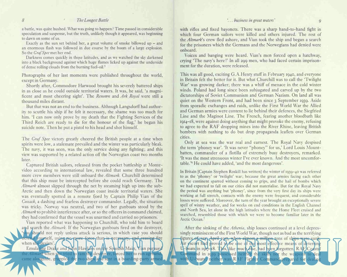 Description: In every theater and across every ocean, World War Two's naval battles raged ceaselessly. For those who served shipboard, danger lurked 24 hours a day from increasingly lethal weapons borne by planes in the skies above and other boats and subs in the water. More than at any other time in history, a sailor could never let down his guard, and his endurance was constantly tested by danger. Through a brilliant mixture of narrative history and personal accounts--collected over almost 30 years of interviewing combatants from both sides--a very powerful, human story emerges of the danger, elation, and miseries of six years of "the longest battle" in the war.