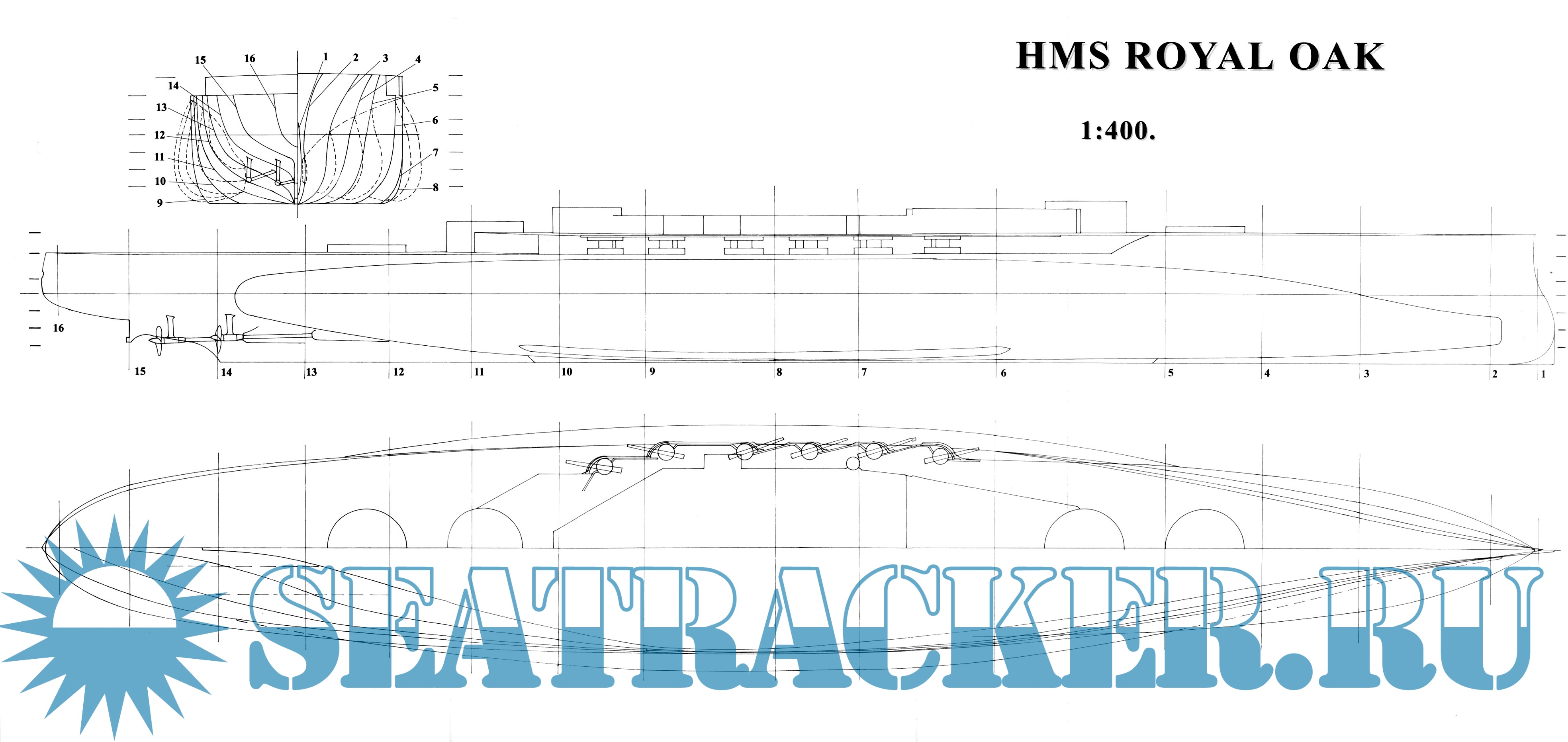 Описание: 31 лист чертежей линкора HMS Royal OAK 1939 год (Великобритания) в масштабе 1:400