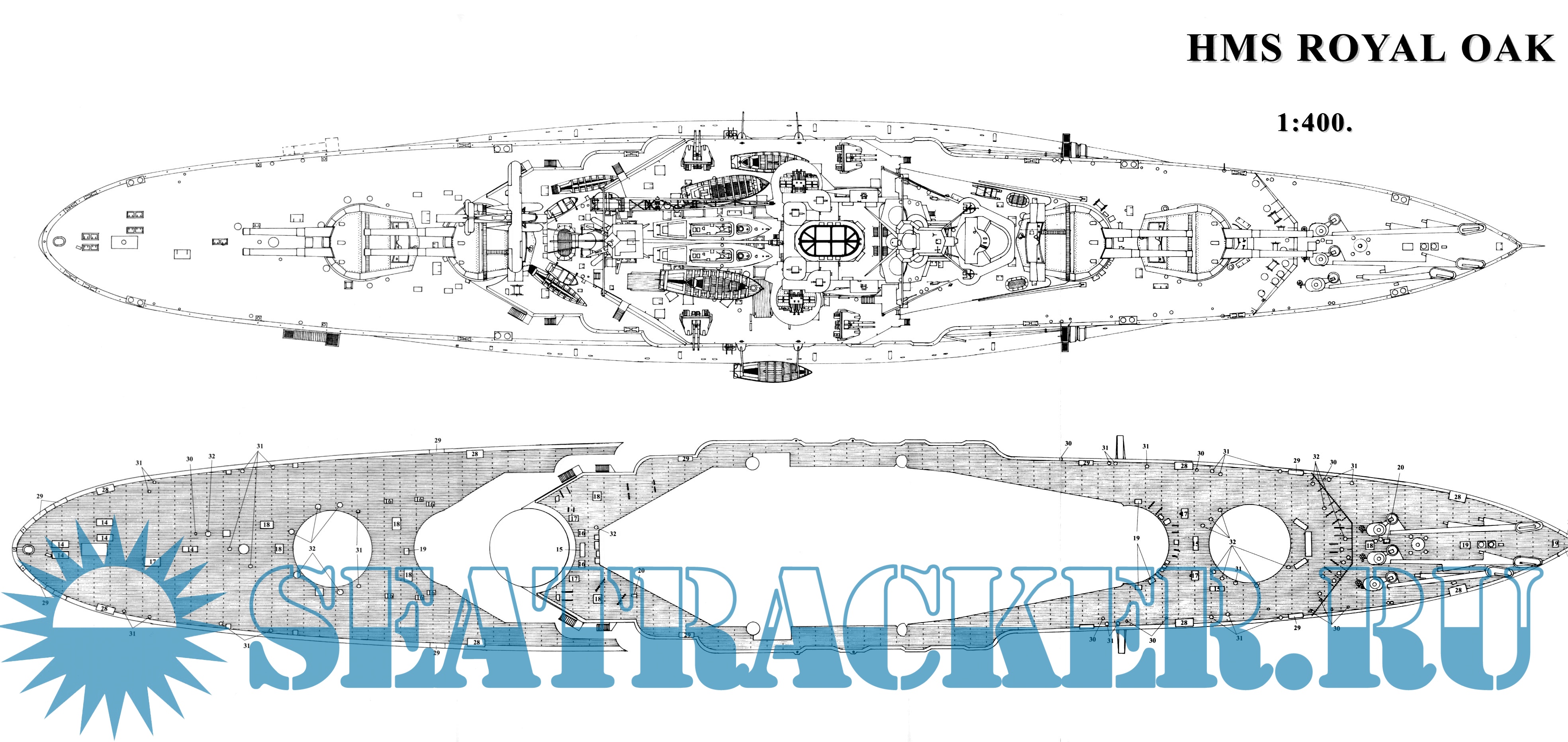 31 лист чертежей линкора HMS Royal OAK 1939 год (Великобритания) в масштабе 1:400Скриншоты