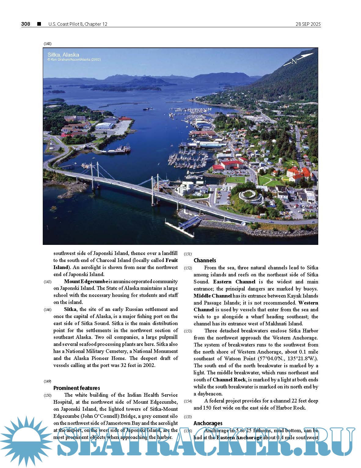 Year: 2025 Language: English Author: NOAA Genre: Documentation Publisher: National Oceanic and Atmospheric Administration (NOAA) Edition: 2025 (47th) Edition Format: PDF Quality: eBook Pages count: 416 Description: The United States Coast Pilot® consists of a series of nautical books that cover a variety of information important to navigators of coastal and intracoastal waters and the Great Lakes. Issued in ten volumes, they contain supplemental information that is difficult to portray on a nautical chart. Topics in the Coast Pilot include channel descriptions, anchorages, bridge and cable clearances, currents, tide and water levels, prominent features, pilotage, towage, weather, ice conditions, wharf descriptions, dangers, routes, traffic separation schemes, small-craft facilities, and Federal regulations applicable to navigation. This edition cancels the 46th Edition and includes all previously published corrections. This publication has been updated through: 28-Sep-2025