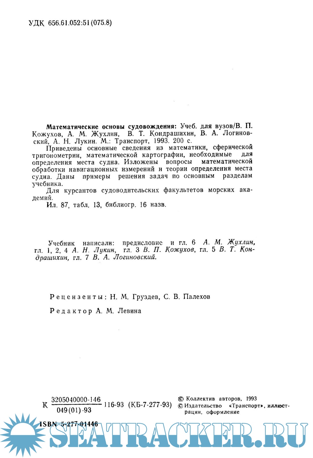 Математические Основы Судовождения - Кожухов В.П., Жухлин А.М. [1993, PDF]