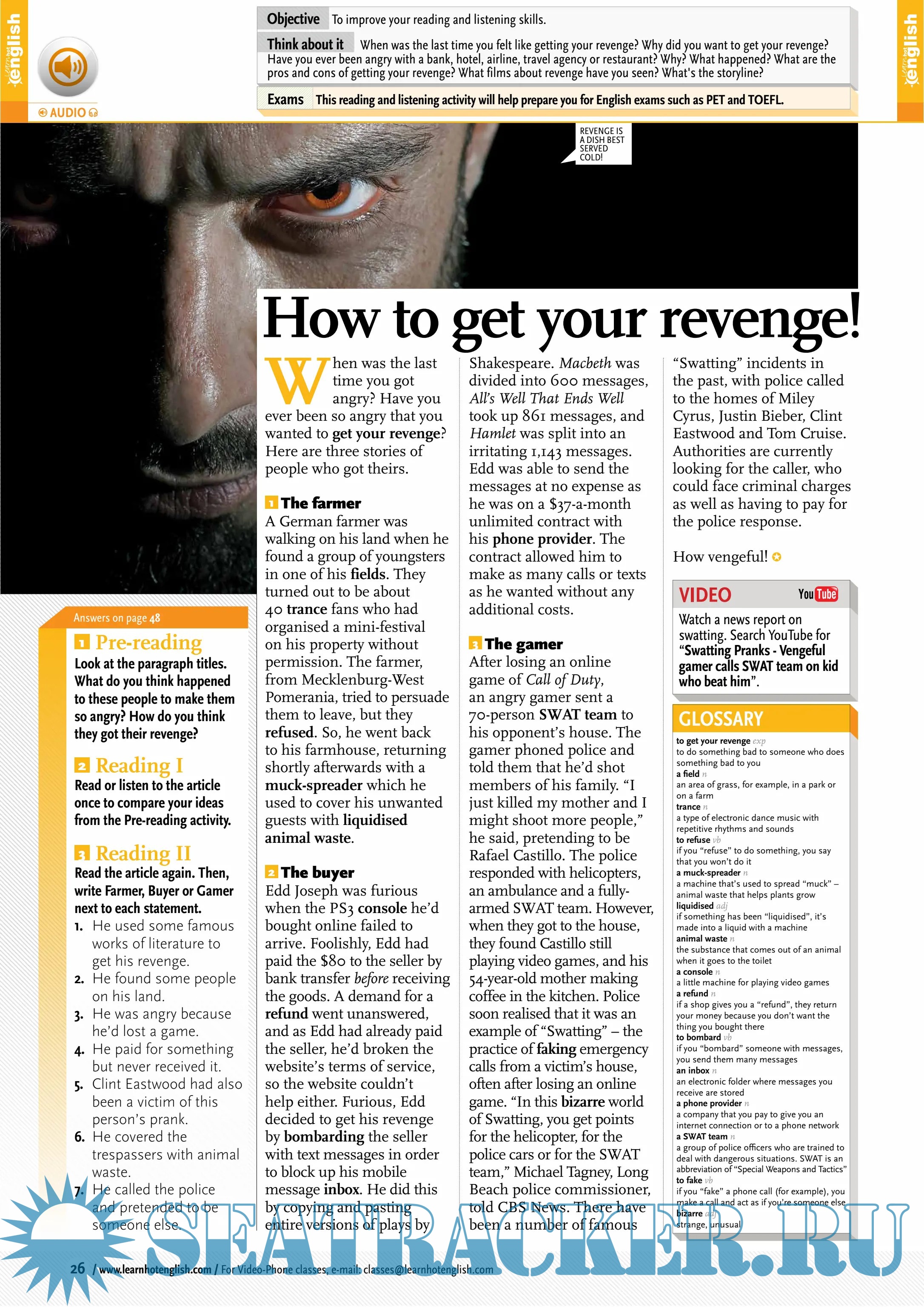 English for all levels (easy – advanced). A monthly magazine for learning English. Idioms, phrasal verbs, useful expressions, grammar, vocabulary. Learn faster because it’s fun! Studying English for an exam, work, or fun? Then Hot English is number 1! By reading and listening to all this great content, you'll improve your English reading and listening skills and learn up to 1,000 useful words or expressions. Plus, you'll get a better job and pass English-language exams more easily. Guaranteed!