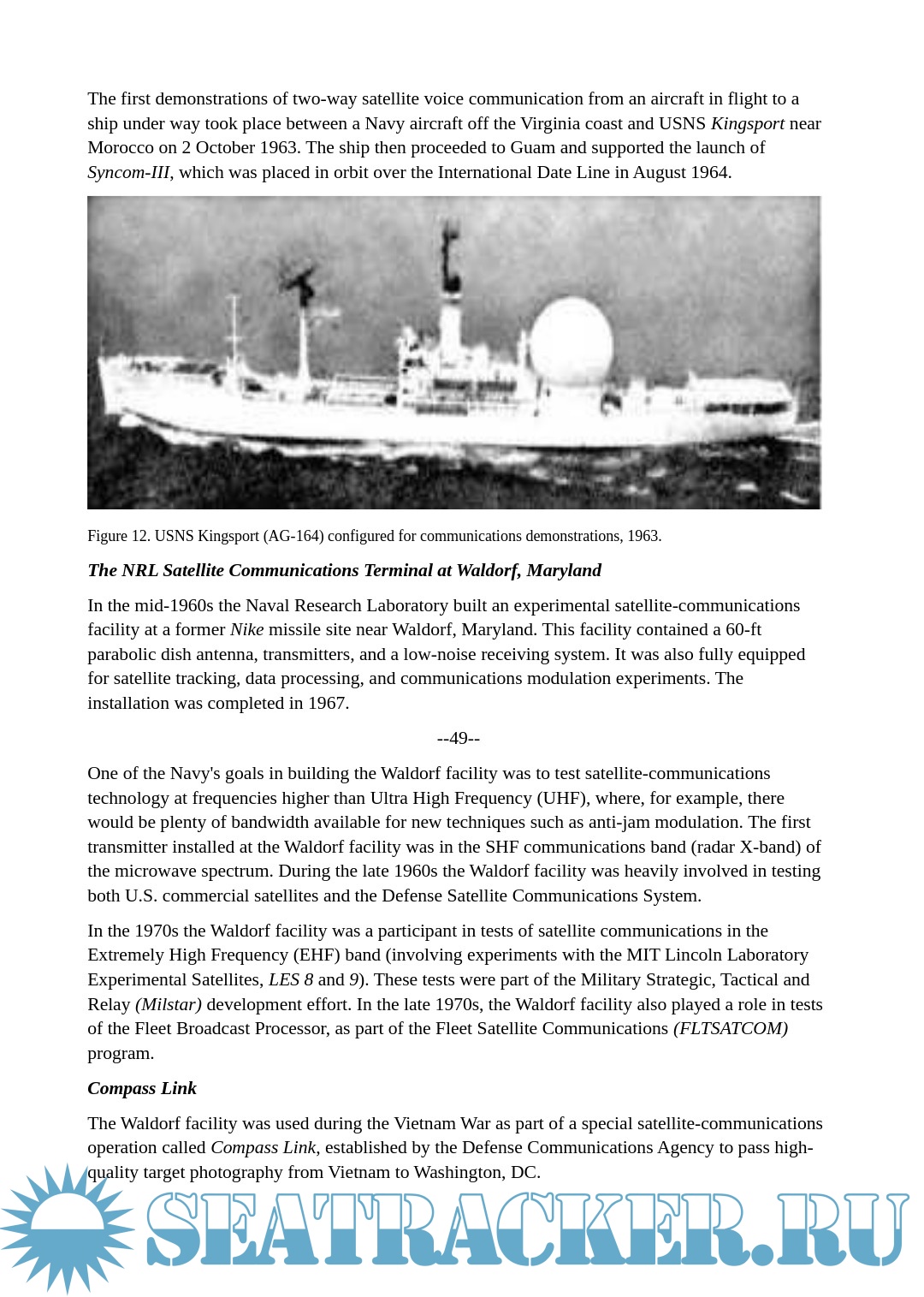 operations of the Fleet, Fleet Marine Forces, and U.S. Space Command, until the system was turned over to the U.S. Air Force in 2004. In the early 1960s, while the Air Force and Central Intelligence Agency concentrated primarily on imagery from space, the Navy built and operated the world's first satellite system for collecting electronic intelligence. Throughout the 1960s, the Navy and Marine Corps provided the majority of astronauts for NASA's manned space flight program, and during this period the Navy also launched Transit, the world's first satellite navigation system that provided U.S. and Allied navies, and eventually the world's merchant ships, with primary navigation support until the appearance of the jointly acquired Global Positioning System.